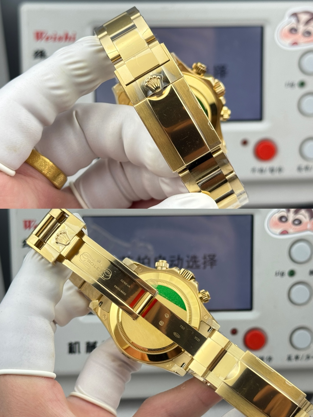 1. The thickness of the Daytona watch is 12.2mm for the latest 2024 model and 12.4mm for older versions. Other market versions use a 7750 fake plate movement, which reduces thickness by flattening the pin bar. This results in extremely poor stability and cannot match the genuine product.
