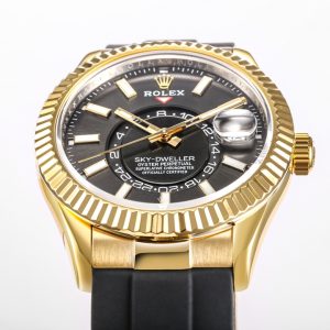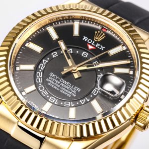 【Factory2022 Masterpiece】Rolex Sky-Dweller! Stunning Details: 【Case】42mm diameter, steadfast and reliable, exuding elegance! Bezel features Rolex Ring Command triangular grooves, with rotating outer ring for month adjustment! Scratch-resistant sapphire crystal, anti-reflective convex magnified date window. 【Bracelet】Oystersteel!Triple-link bracelet with Oysterlock clasp and 5mm Easylink extension system. 【Dial】Sunburst finish with red dot month indicator at 12 o’clock. 【Movement】Powered by the automatic mechanical 9001 caliber. 【Functions】Date display / Month display / Annual calendar / Dual time zone! Factory’s Masterpiece—Deserves a place in your collection!