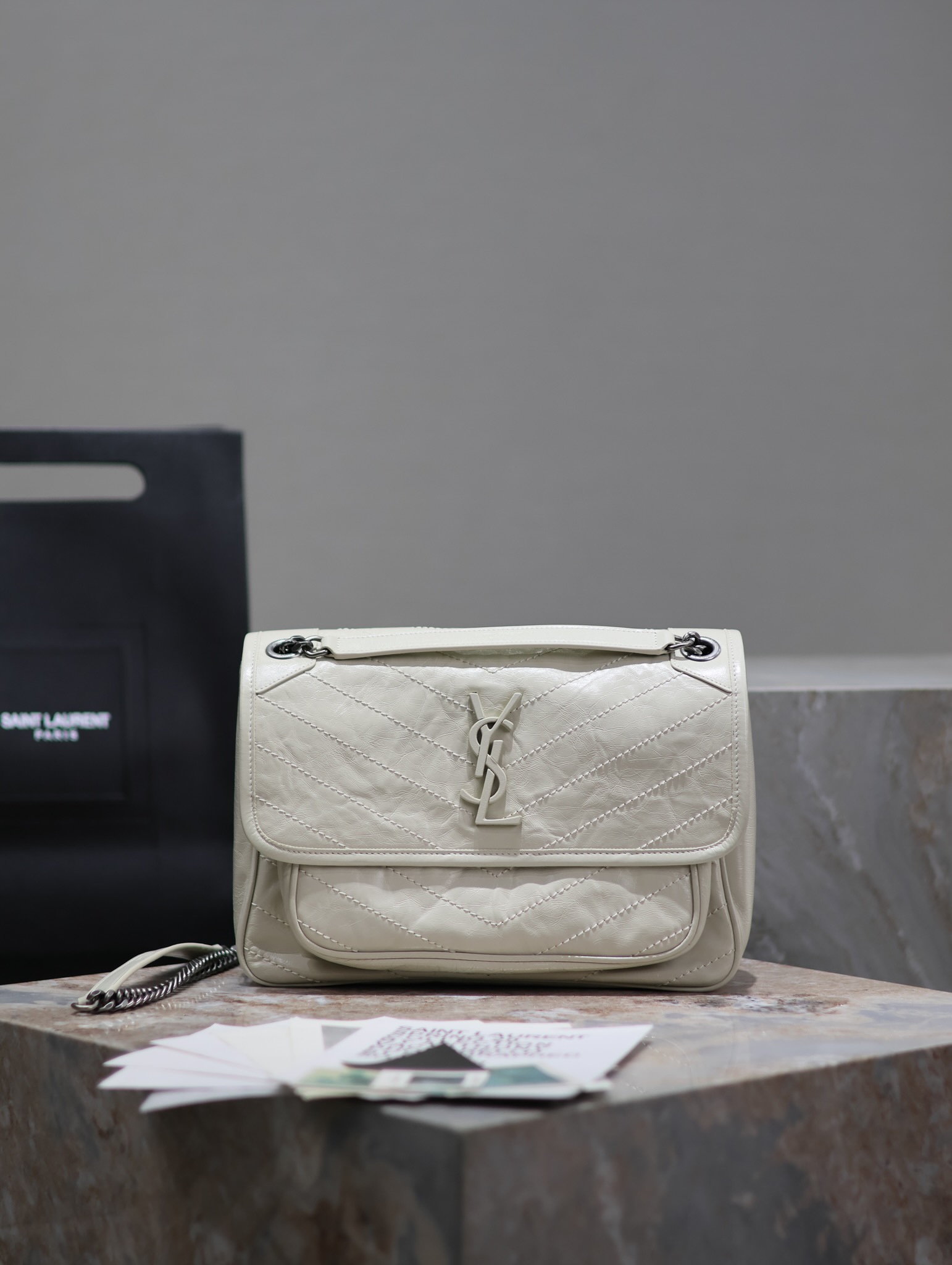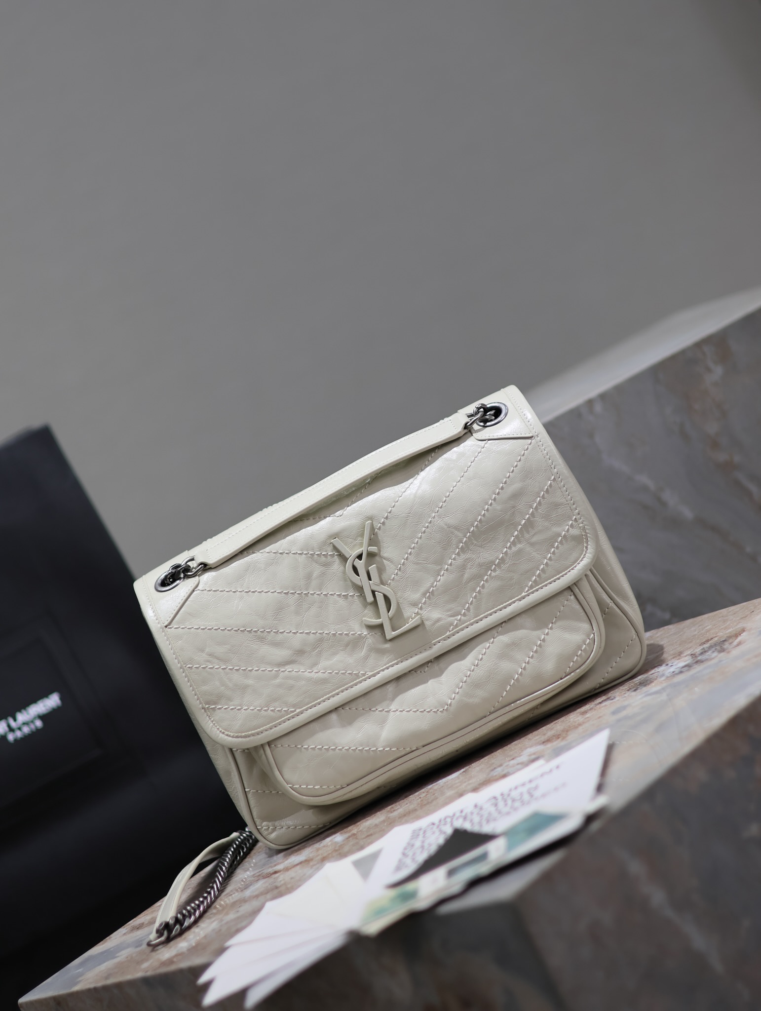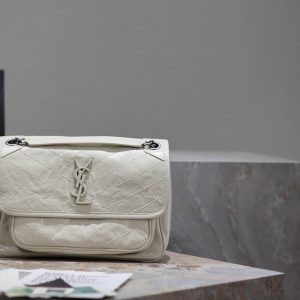 【Genuine Leather】Medium Size 28cm_#Cream White# The new version of Niki is more practical, featuring an additional D-ring on each side compared to the original design. This extra manufacturing step enhances its load-bearing capacity! ZP Genuine Leather P1030 【Matching Packaging】 Model: 633158 Genuine Leather Dimensions: 28×20.5×8.5cm