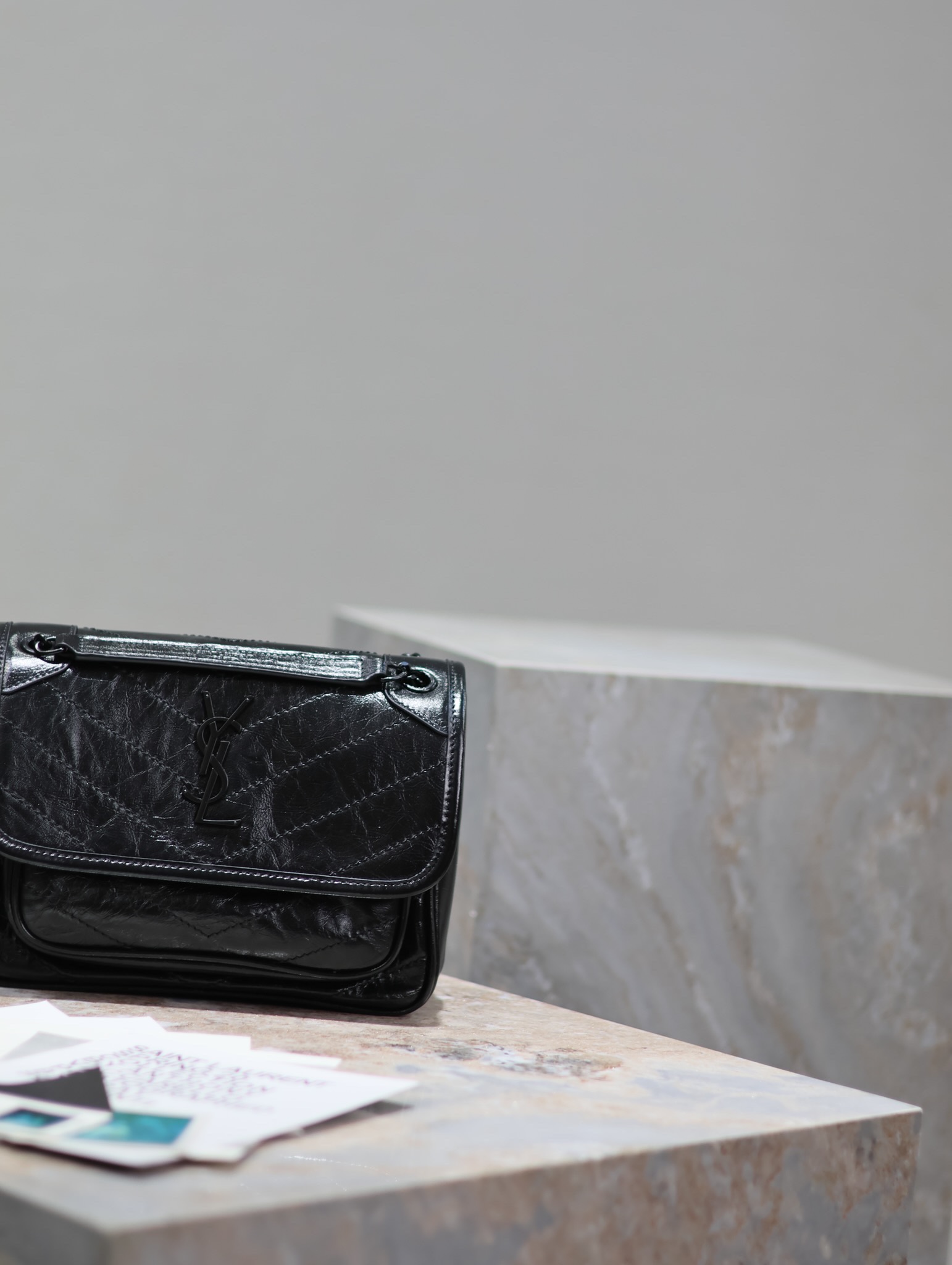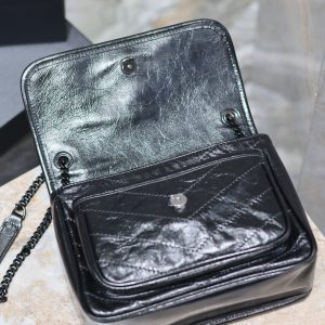 【Genuine Leather】Small Size 22cm_#Black Chain with Black Buckle# The new version of Niki is more practical, featuring an additional D-ring on each side compared to the original design. This extra step enhances its load-bearing capacity! Genuine Leather P950 【Matching Packaging】 Model: 633151 Genuine Leather Dimensions: 22×16.5×12cm