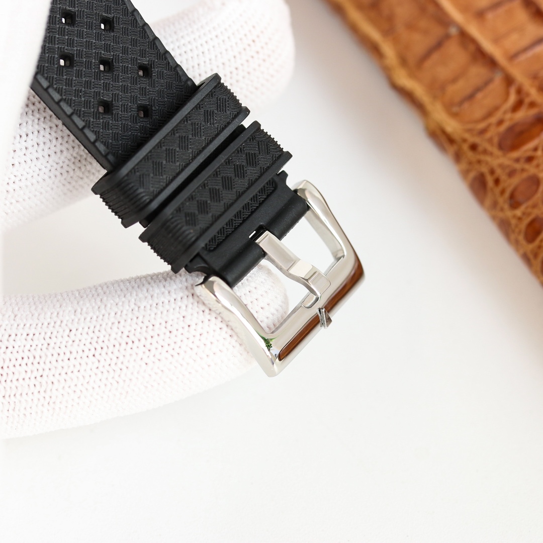 2⃣️ The strap faithfully replicates the fabric-textured rubber band with a stainless steel pin buckle.Avoiding the trend for oversized cases, the Barracuda features a 40.3mm diameter with 300m water resistance. Powered by a 9015 movement modified to Cal·1151, it delivers precise timekeeping. Every detail replicates the original 1:1.