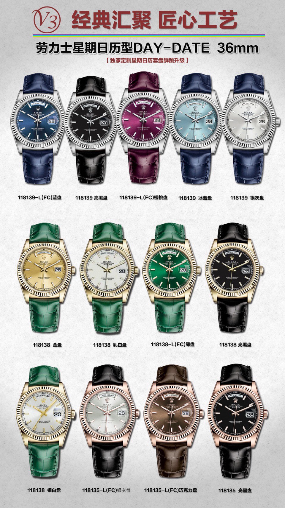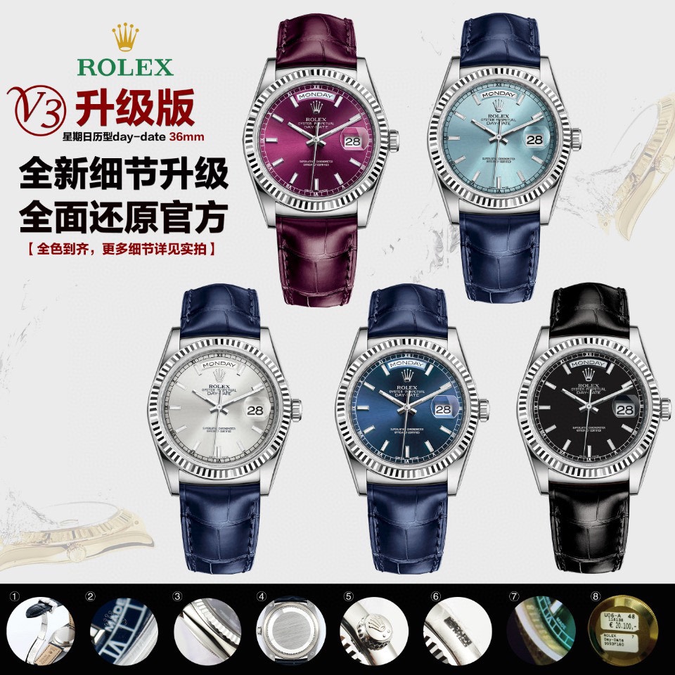 ![【U.S. President】DD, who once adored wearing Rolex! Rolex Datejust Series Day-Date 🎮XF3—it's the Blue Balloon of Rolex! DD Weighted Edition [v3 Factory-Upgraded Version] now in stock!The most iconic series in Rolex, none other than the DD! Rolex Day-Date Series 118135/118138/118139 [Full Color Range]! To maintain official dimensions and thickness, it features the 2836-2 automatic mechanical movement, with an exclusive custom integrated day-date disc for instant jumping! Presented in brand-new 904L steel!【Upgrade 1】Crown. Positioned identically to the official version with a prominent design and smooth, tapered finish matching the bracelet! 【Upgrade 2】Bracelet. Front side features authentic color matching the genuine article. Back side displays the official code 346763, with font, color, and bracelet lines perfectly synchronized to the official version! 【Upgrade 3】Crystal. The anti-counterfeit logo on the sapphire crystal features Rolex's new dotted emblem, technically engraved within the crystal's center.🎮【Upgrade 4】Case Back. Engravings on all four lug angles match the genuine version, with distinct lettering for white, yellow, and rose gold cases! Both sandblasted and polished sections on the case back are meticulously replicated!【Upgrade 5】Side Profile: Case curvature and overall thickness are proportionally identical to the official model. Crown features the official two-tone waterproof emblem, and the side retains the authentic QR code sticker!The "Golden Rolex" is synonymous with the Rolex Day-Date, commonly abbreviated as DD. Its full official name is the Oyster Perpetual Day-Date. The earliest iteration of the DD was likely the President series, as the [U.S. President] was known for his fondness for wearing Rolex's solid gold DD, propelling it to fame and earning it the nickname "President's Watch."Four simple words encapsulate this timepiece's defining features: waterproof, automatic, date, day. Limited stock available—act fast! 🎮 Sanjie Exquisite presents this meticulously crafted men's mechanical watch. SJ delivers ultra-realistic product photography.](https://maivaro.com/wp-content/uploads/_d-4fw9jb69azasu1-6q2qdps6rg9xxdnksl3qxw_1.jpg)