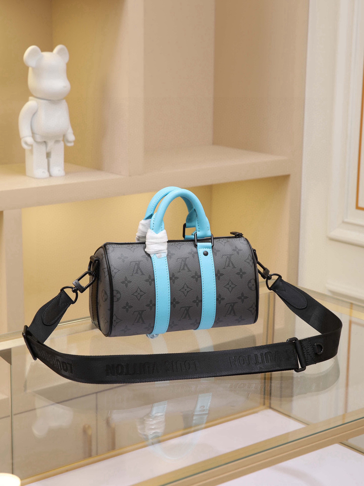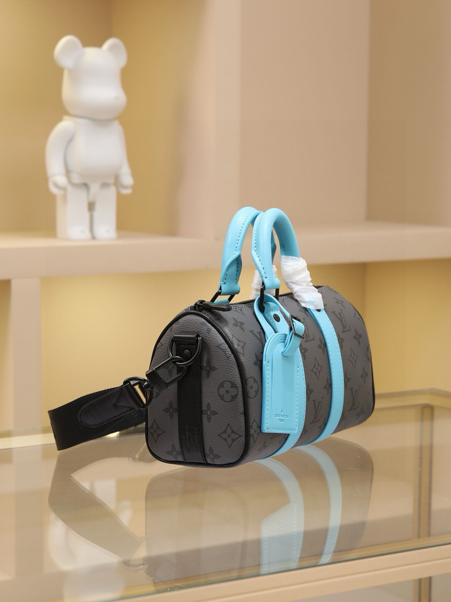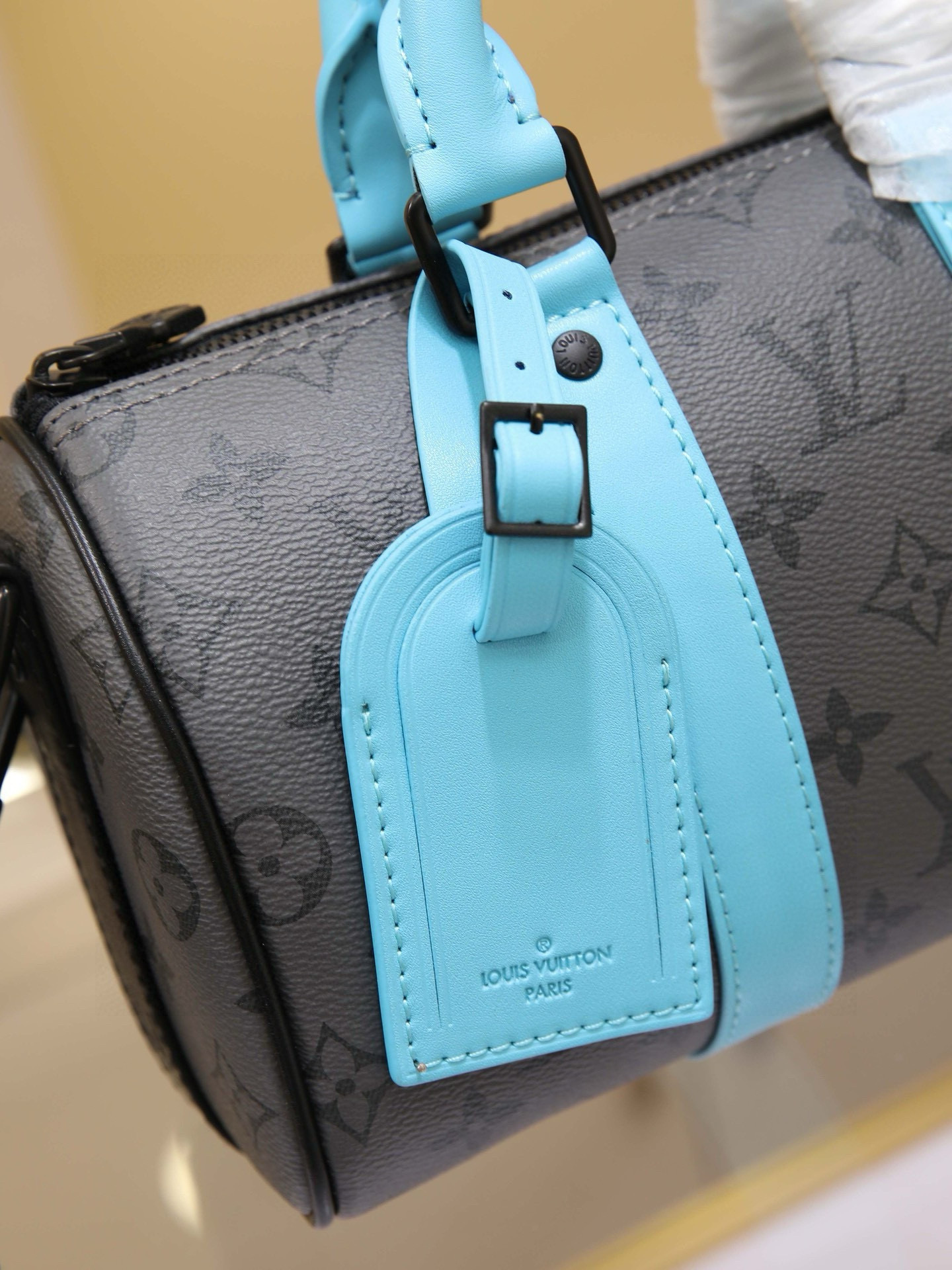 🔥M11645 Full Metal Hardware This Keepall Bandoulière 25 bag features Monogram Eclipse Reverse canvas with leather trim, accented by bright-colored reinforced side straps, handles, and signature plaque. Its compact silhouette is enhanced with matte metal hardware and a removable, adjustable fabric shoulder strap.25 x 15 x 11 cm (Length x Height x Width)