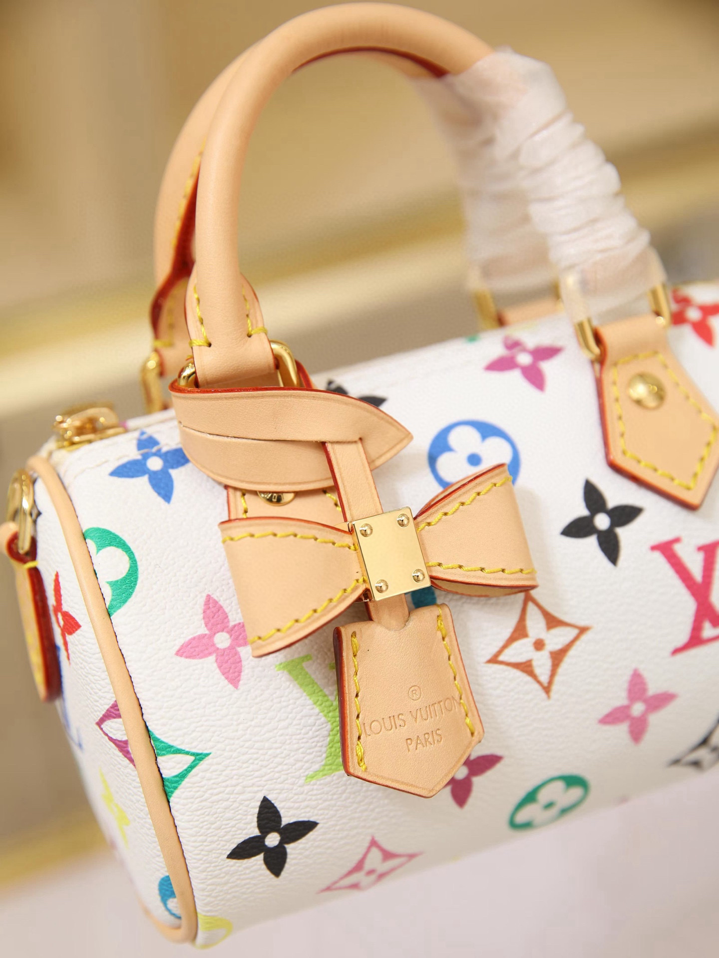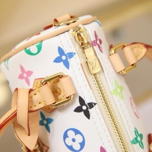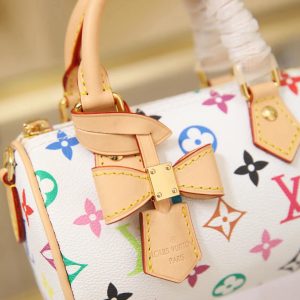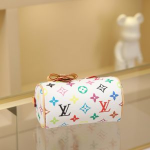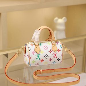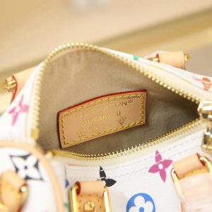 🔥M13391 White Color This Nano Speedy handbag features a compact silhouette crafted from Monogram coated canvas with calf leather trim, showcasing the vibrant spirit of the Louis Vuitton x Takashi Murakami reissue collection through its bright hues.Toron handles and a dazzling padlock pay homage to the House’s travel heritage, while a removable and adjustable shoulder strap and a distinctive LV x TM key case complete the ensemble.