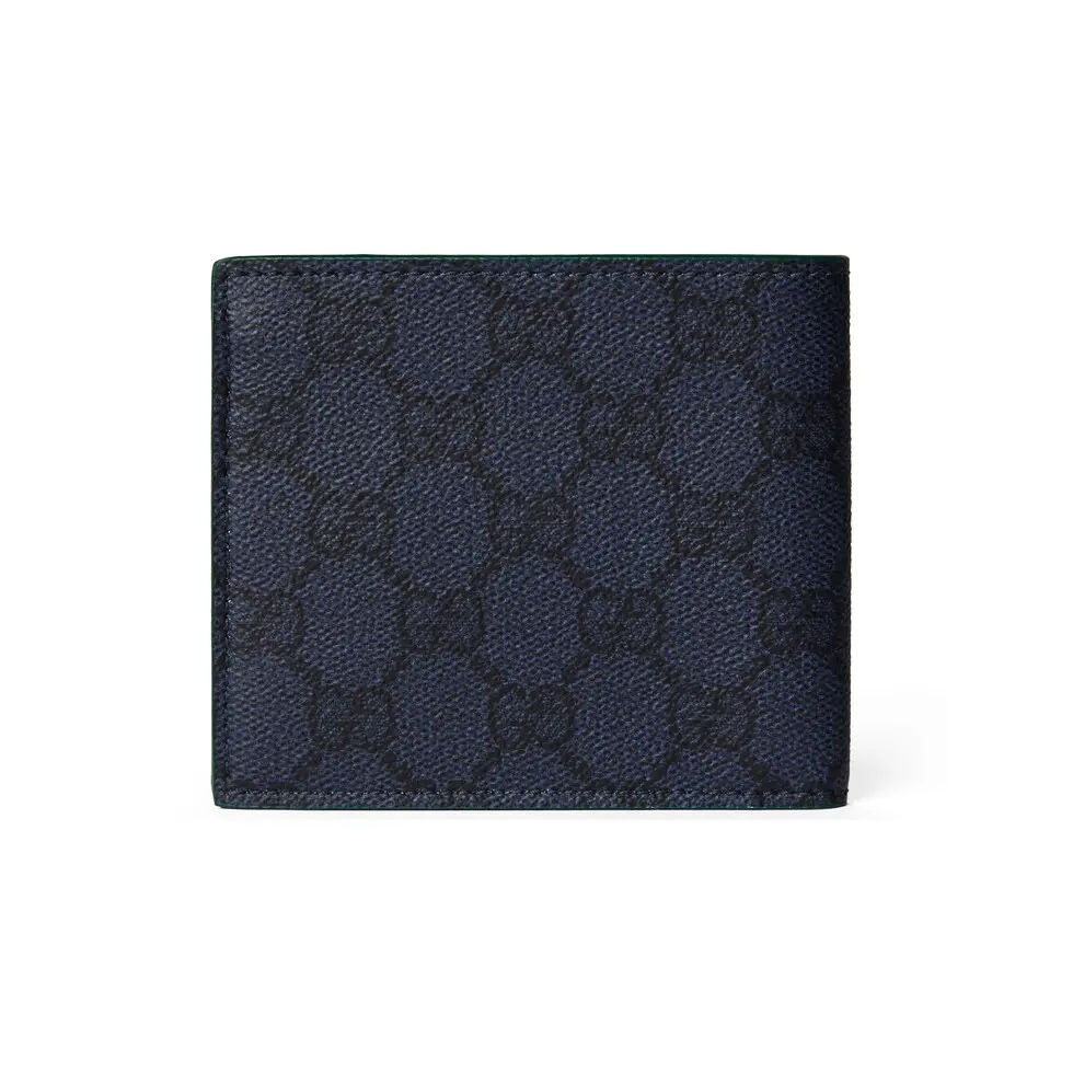 🔥This bifold wallet is expertly crafted from supple GG Supreme leather, featuring a striking two-tone leather interior. Ceramic-effect GG details complete this piece.Deep blue supple GG Supreme leather with green leather lining, palladium-tone hardware, and blue ceramic-effect cloud-patterned fabric lining. GG details inside: 8 card slots and 2 bill compartments. Model: 768243.Dimensions closed: 11 cm (W) x 9 cm (H) Dimensions open: 21 cm (W) x 9 cm (H) Made in Italy Weight: approx. 68 g Color: Blue Rubber/Green
