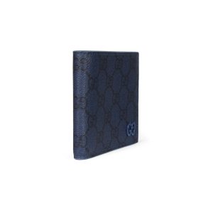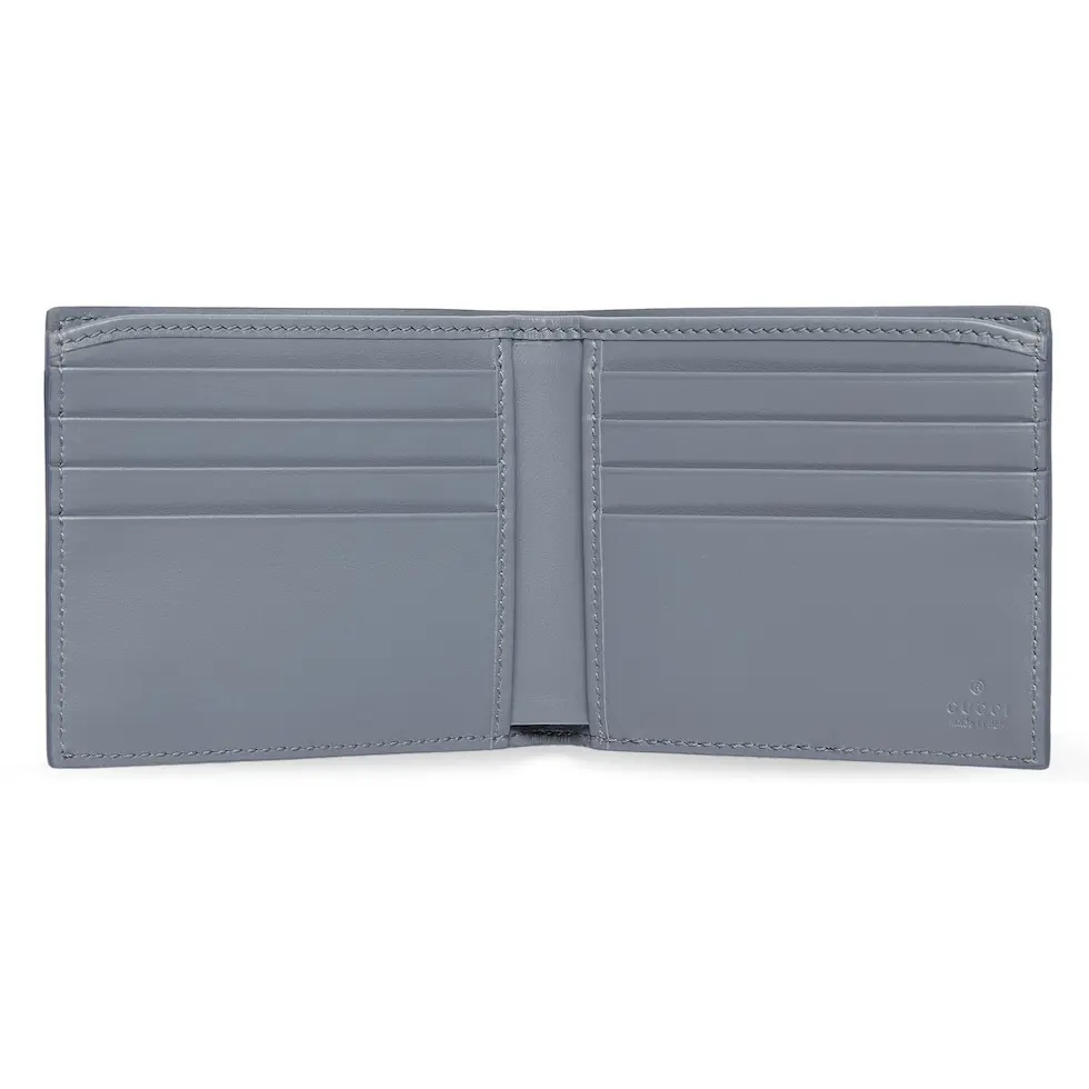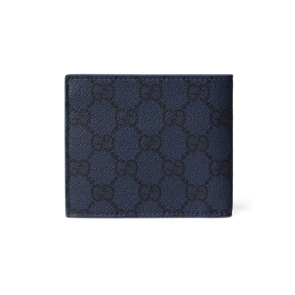 🔥This bifold wallet is expertly crafted from supple GG Supreme leather, featuring a striking two-tone leather interior. Ceramic-effect GG details complete this piece.Deep blue supple GG Supreme leather with gray-blue leather lining, palladium-tone hardware, blue ceramic-effect cloud-patterned fabric lining. GG details inside: 8 card slots and 2 bill compartments. Model: 768243.Dimensions closed: 11 cm (W) x 9 cm (H) Dimensions open: 21 cm (W) x 9 cm (H) Made in Italy Weight: approx. 68 g Color: Blue/Gray