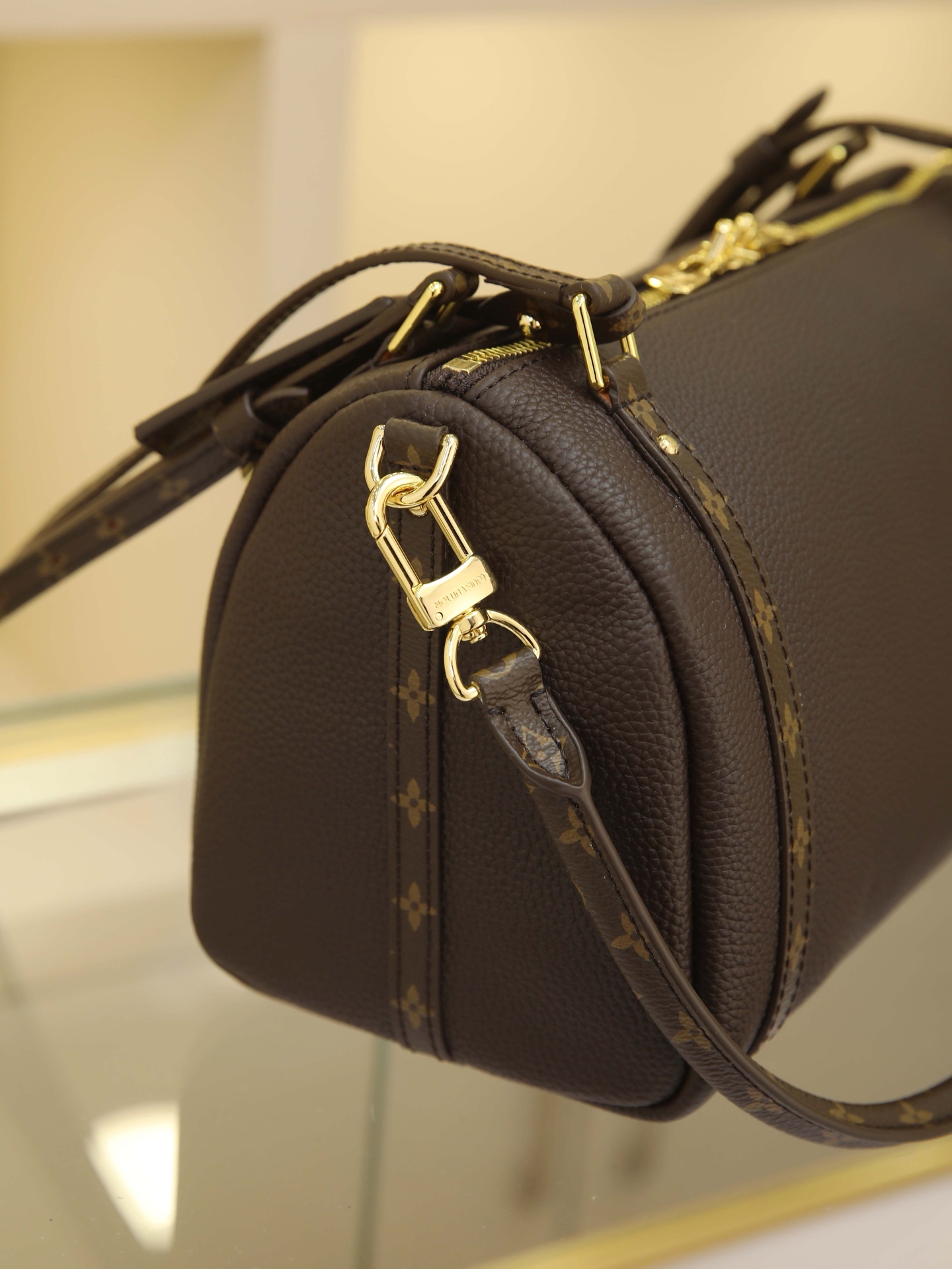 Be the first to review “17 x 13.5 x 26 cm (H x W x L) Cowhide-coated canvas trim Cotton lining Metal hardware Dual zipper closure Removable key pouch and detachable padlock (attaches to zipper pull) Shoulder strap:Removable, adjustable Strap half-length: 41.0 cm Adjustable to: 47.0 cm Handles: Dual handles” Cancel reply