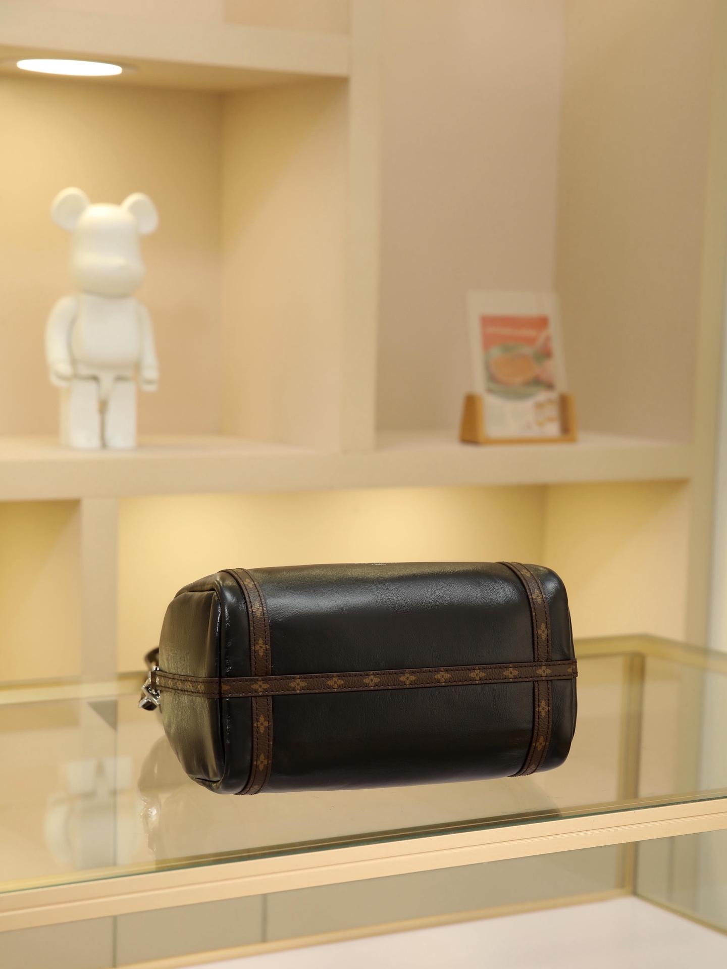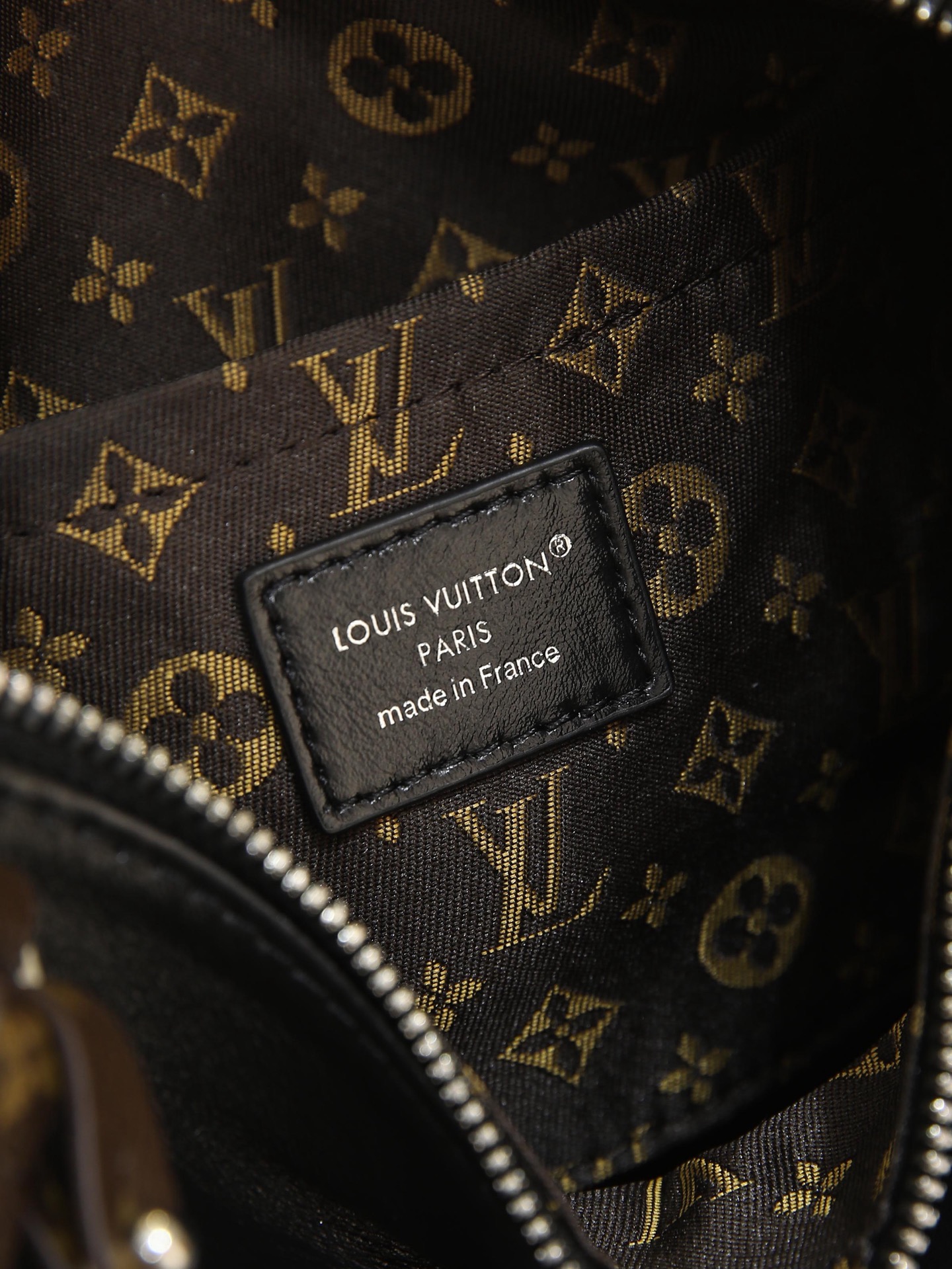 Be the first to review “17 x 13.5 x 26 cm (H x W x L) Cowhide-coated canvas trim Cotton lining Metal hardware Dual zipper closure Removable key pouch and detachable padlock (attaches to zipper pull) Shoulder strap:Removable, adjustable Strap half-length: 41.0 cm Adjustable to: 47.0 cm Handles: Dual handles” Cancel reply