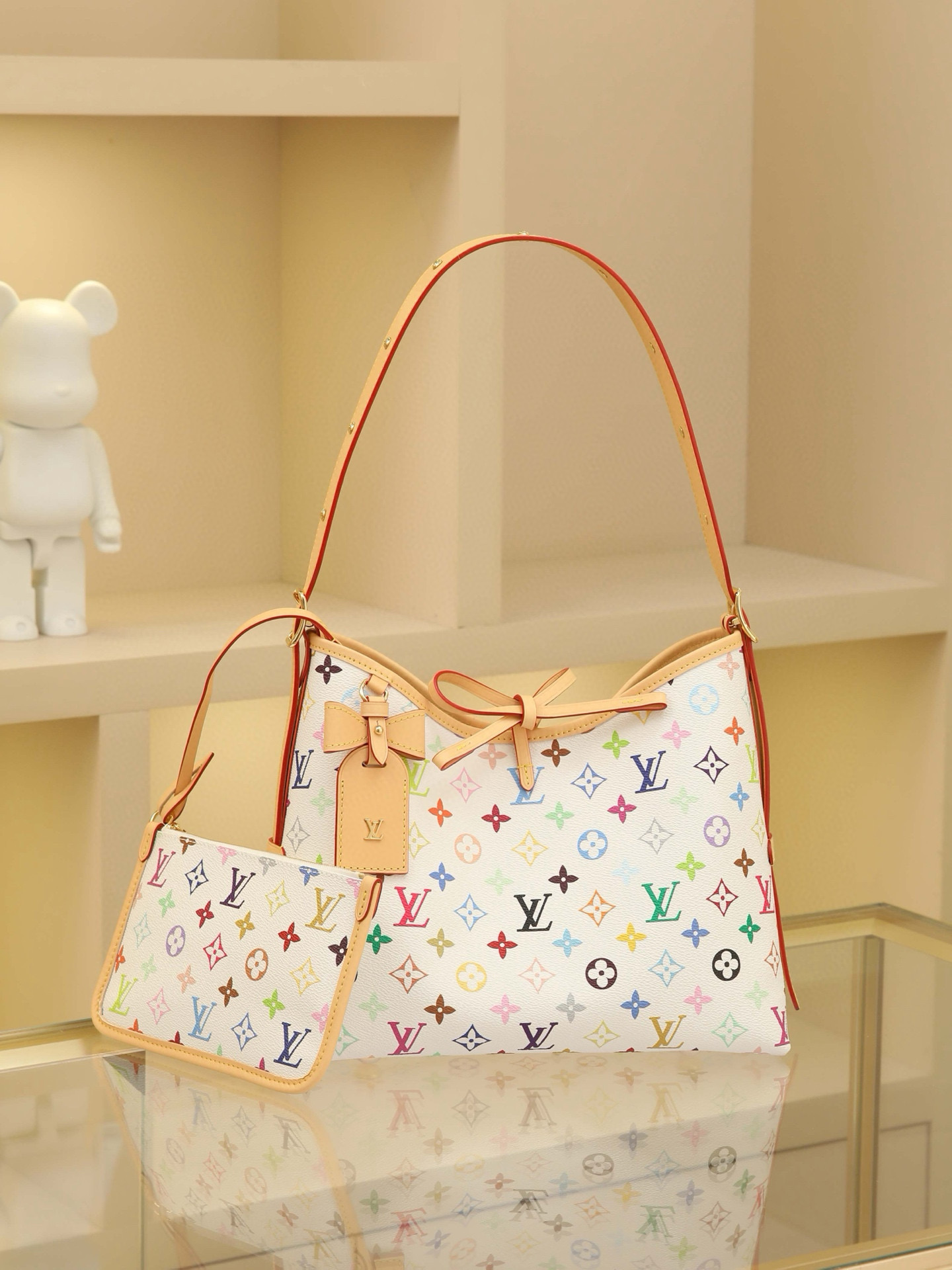 2025 Takashi Murakami Collaboration CarryAll Small Handbag Crafted from thirty-three-color canvas with leather trim, this compact companion is perfect for urban living. Its generous silhouette features a neatly organized interior, enhanced by a large inner pocket for added functionality. A detachable thirty-three-color canvas zippered pouch is secured with a leather strap. Dimensions: 24*29*12cm