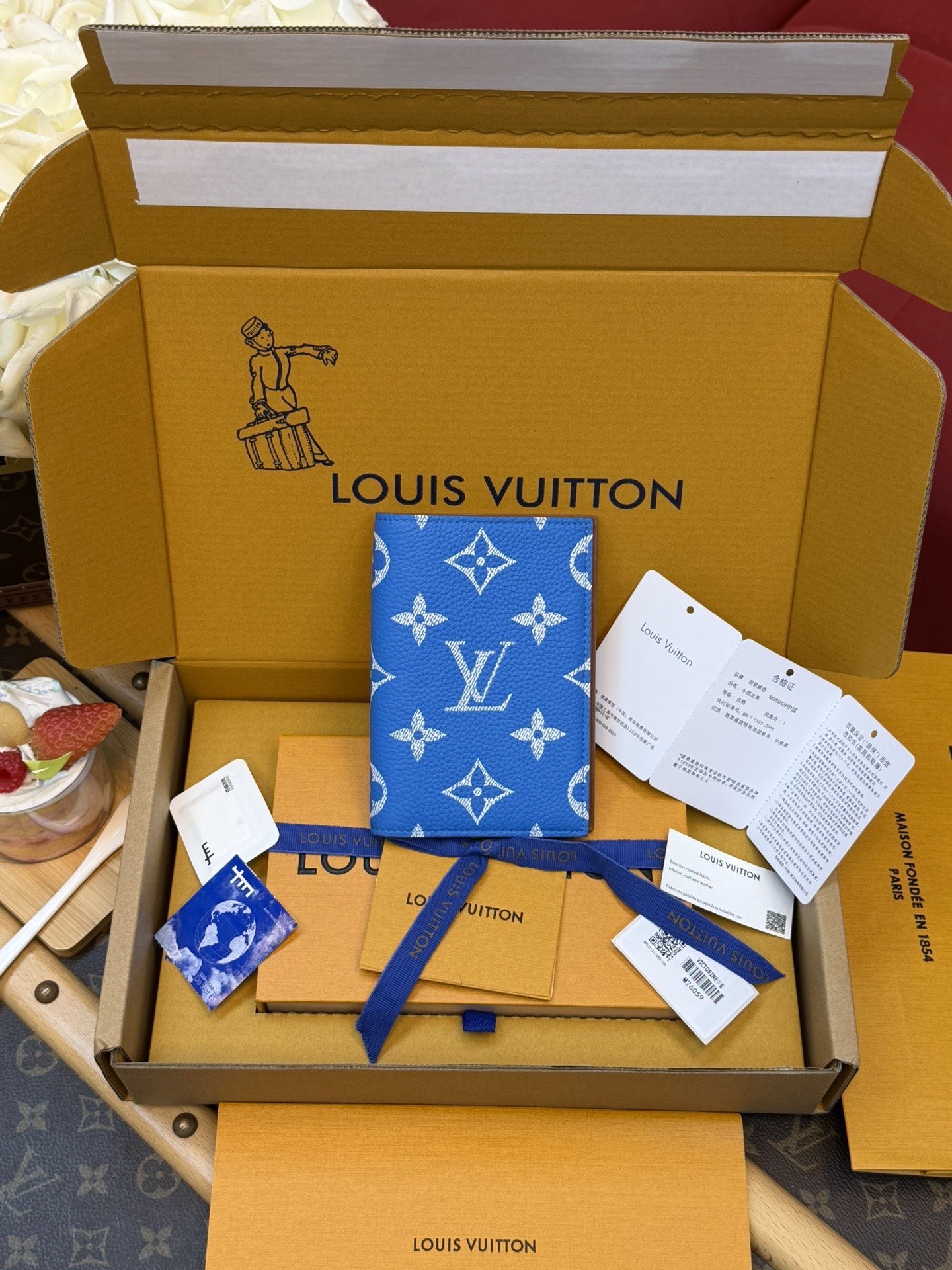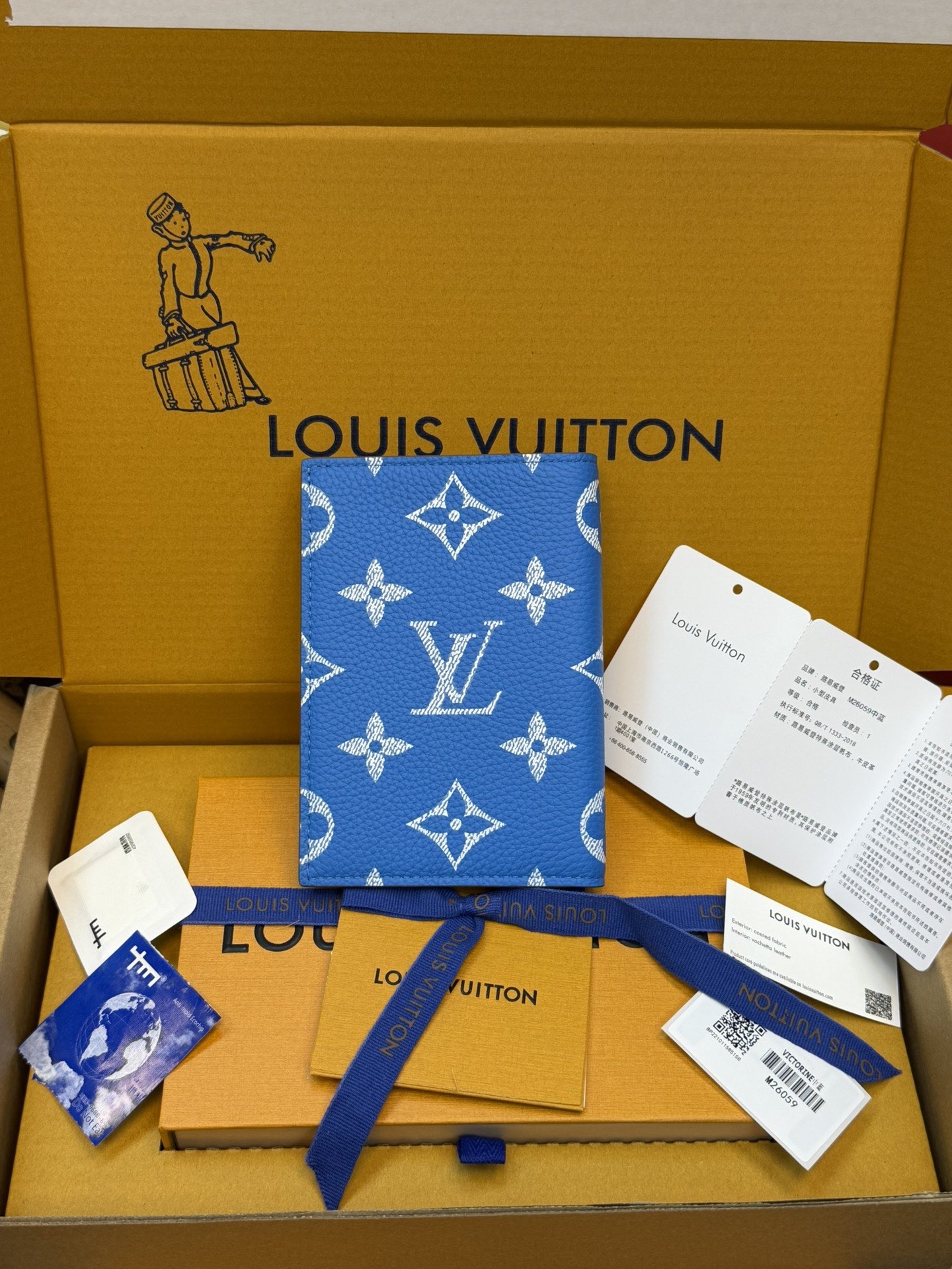 320¥ Premium Full-Steel Wallet, Authentic Design, Top-Grain Cowhide, 163 Dynamic, Boutique-Matching Packaging, Complete Set as Pictured: Packaging, Certificate of Authenticity, Copper Electronic Tag, Gift Bag! M26059 Medium Blue