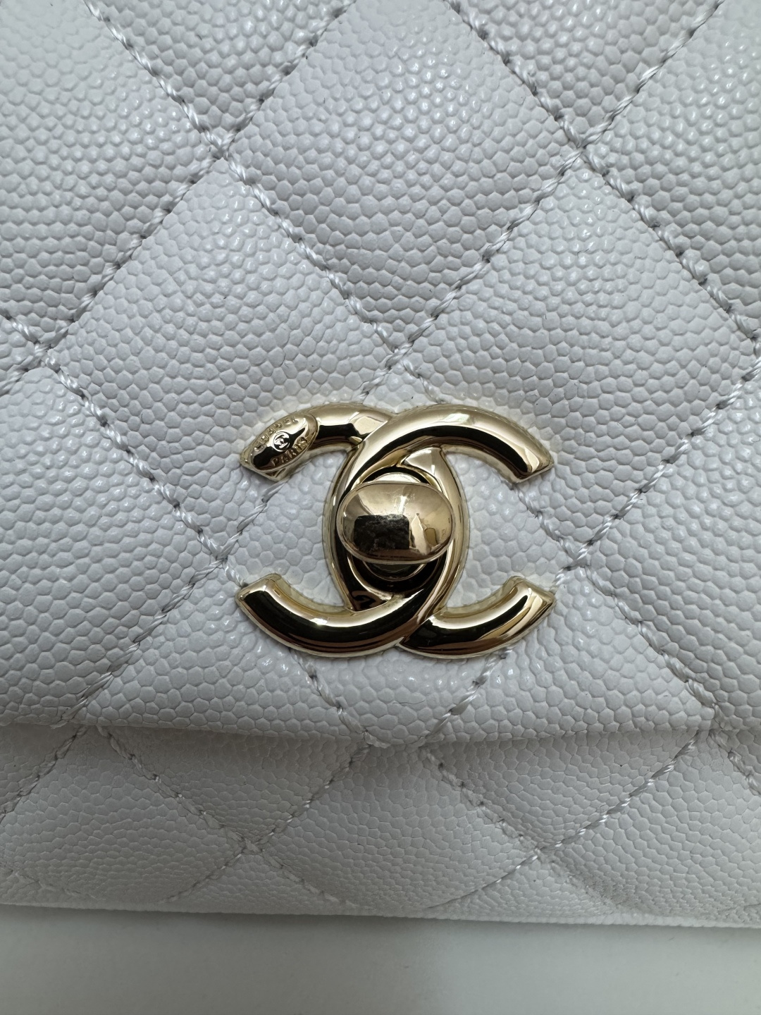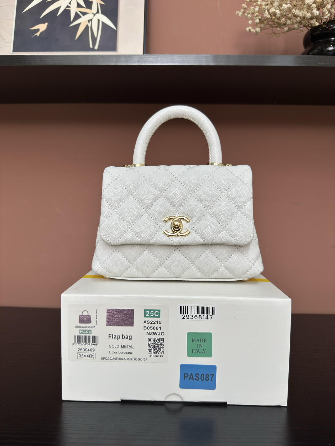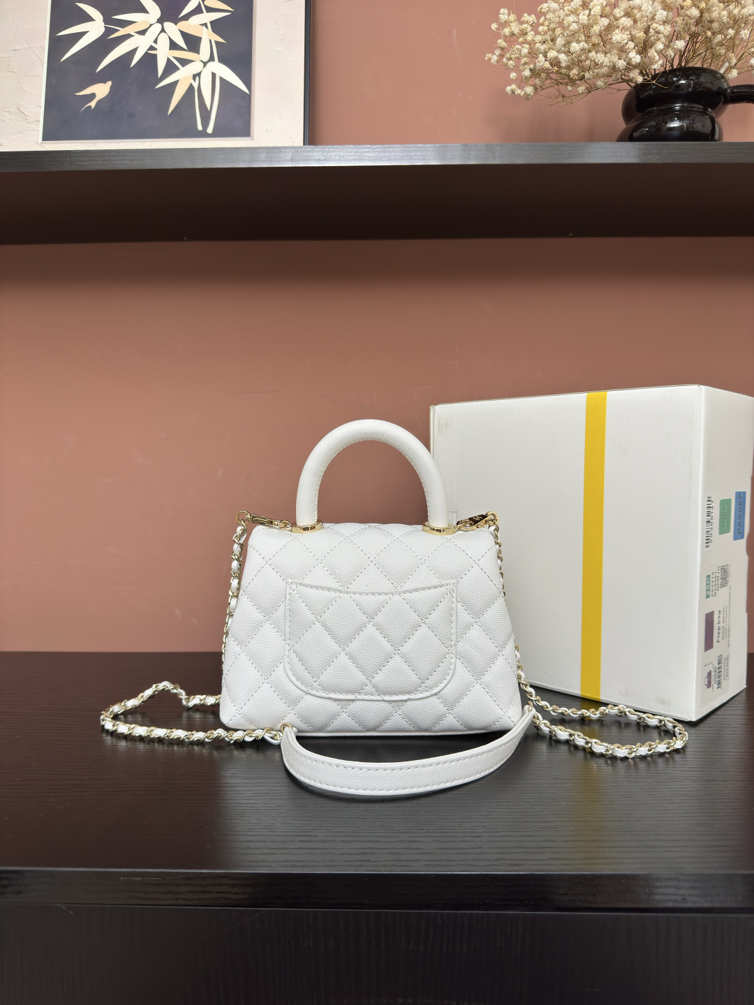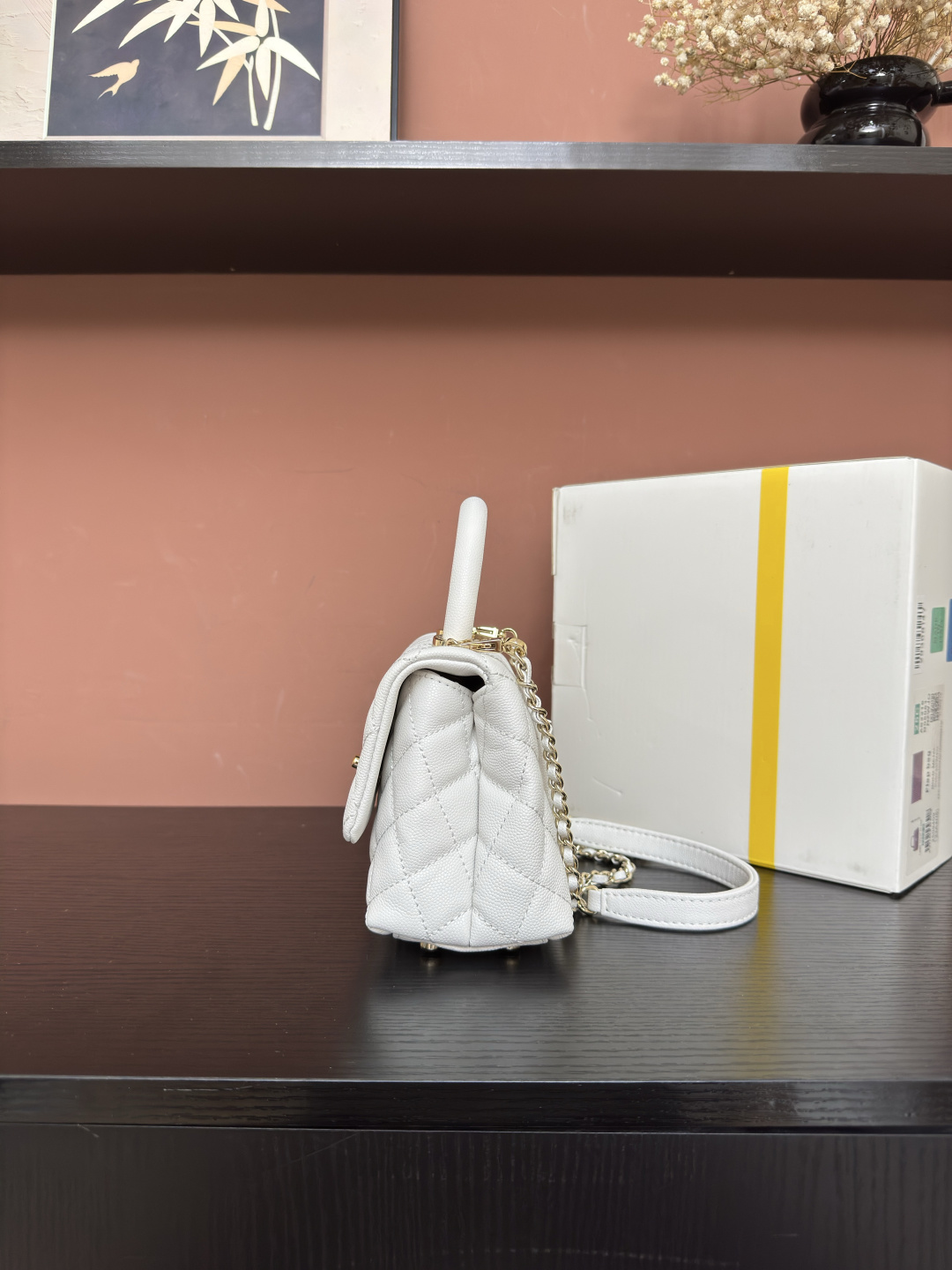 750AS2215# White Ball Pattern Unstitched Edge Light Gold ๐ Exclusive Background ๐ Authentic Product Photos Top-Quality Goods ๐ Timeless Classic Handbag๏ฝ Coco Handle Flap Top Handbag ๐ Dimensions 19*14*9cm