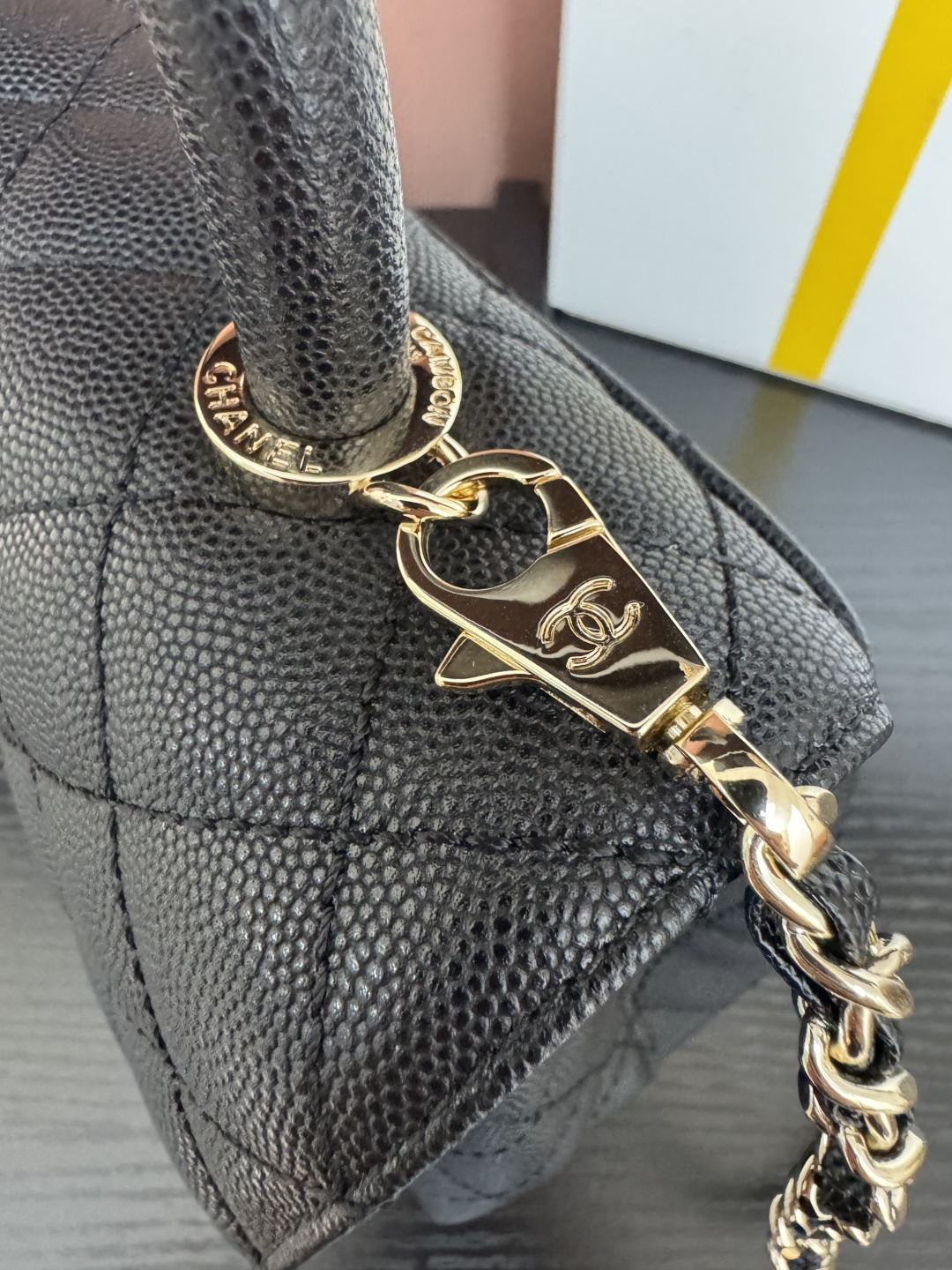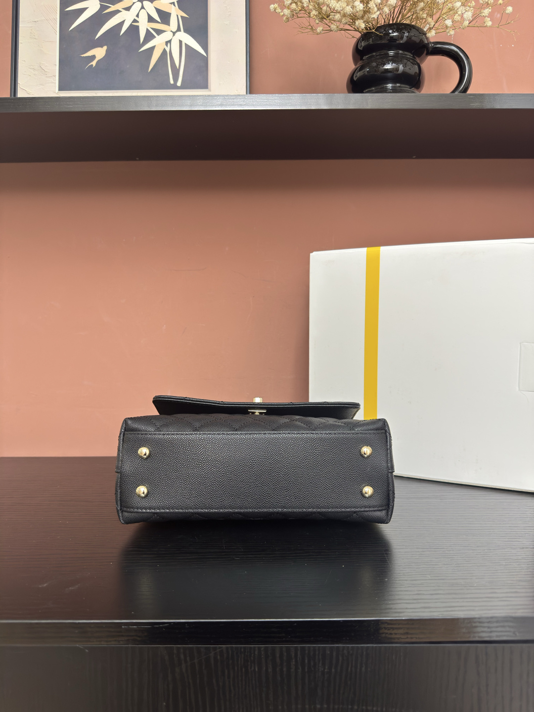 780AS92990# Black Ball-Patterned Edge with Light Gold Handle 💜Exclusive Background💜 Genuine Product Photos Top-Quality Item👜 Coco Handle Flap Handbag🎁 Dimensions: 24*14*10cm