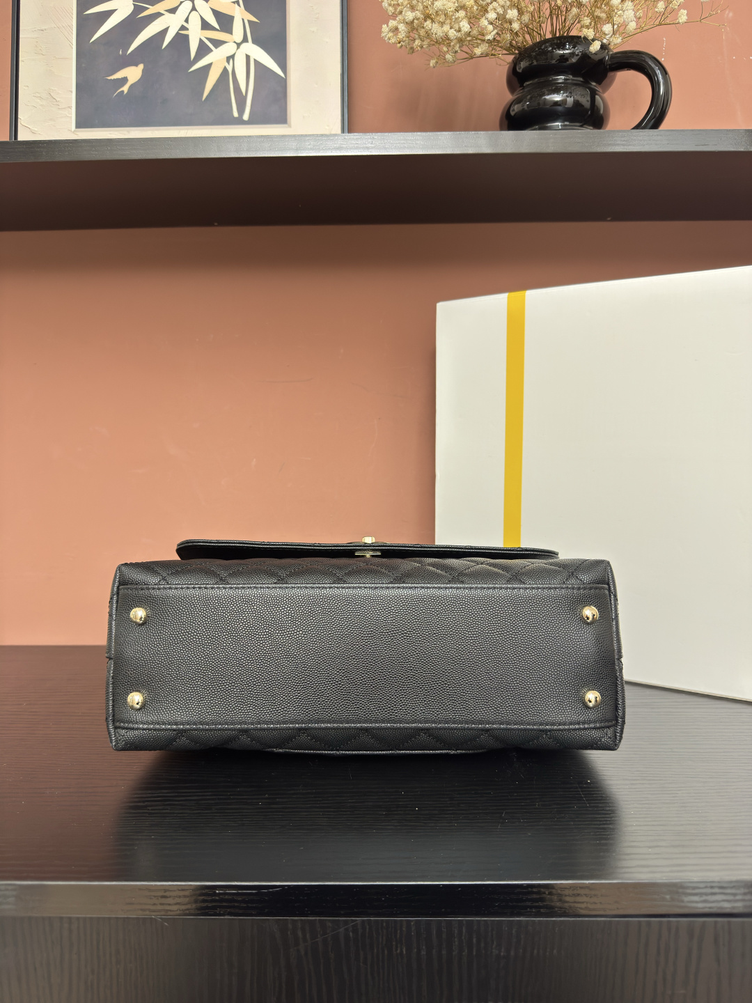 810AS92991# Black Ball-Patterned Edge with Light Gold-Red Handle ๐ Exclusive Background ๐ Genuine Product Photos Top-Quality Item ๐ Coco Handle Flap Handbag ๐ Dimensions: 29*18*12cm