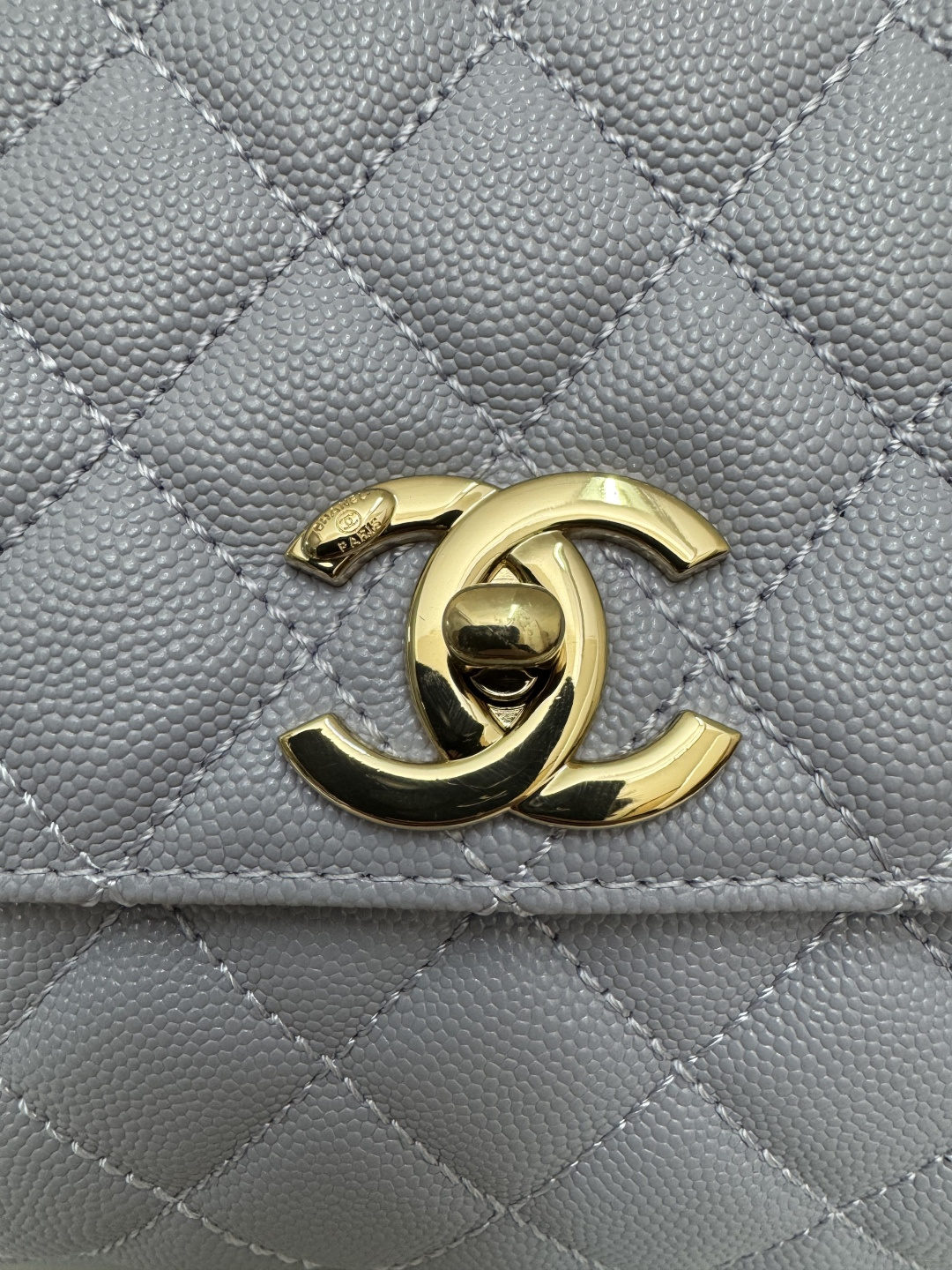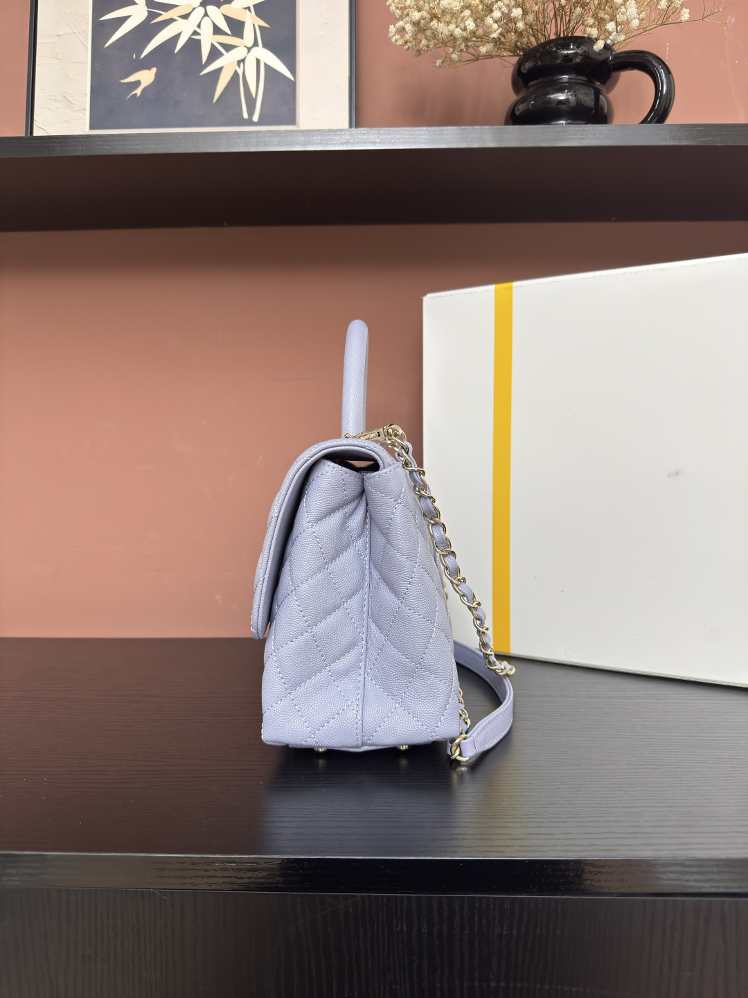 810AS92991# Light Purple Ball Pattern with Gold Trim ๐ Exclusive Background ๐ Authentic Product, Top-Quality Item ๐ Timeless Classic Handbag๏ฝ Coco Handle Flap Tote Bag ๐ Dimensions: 29*18*12cm