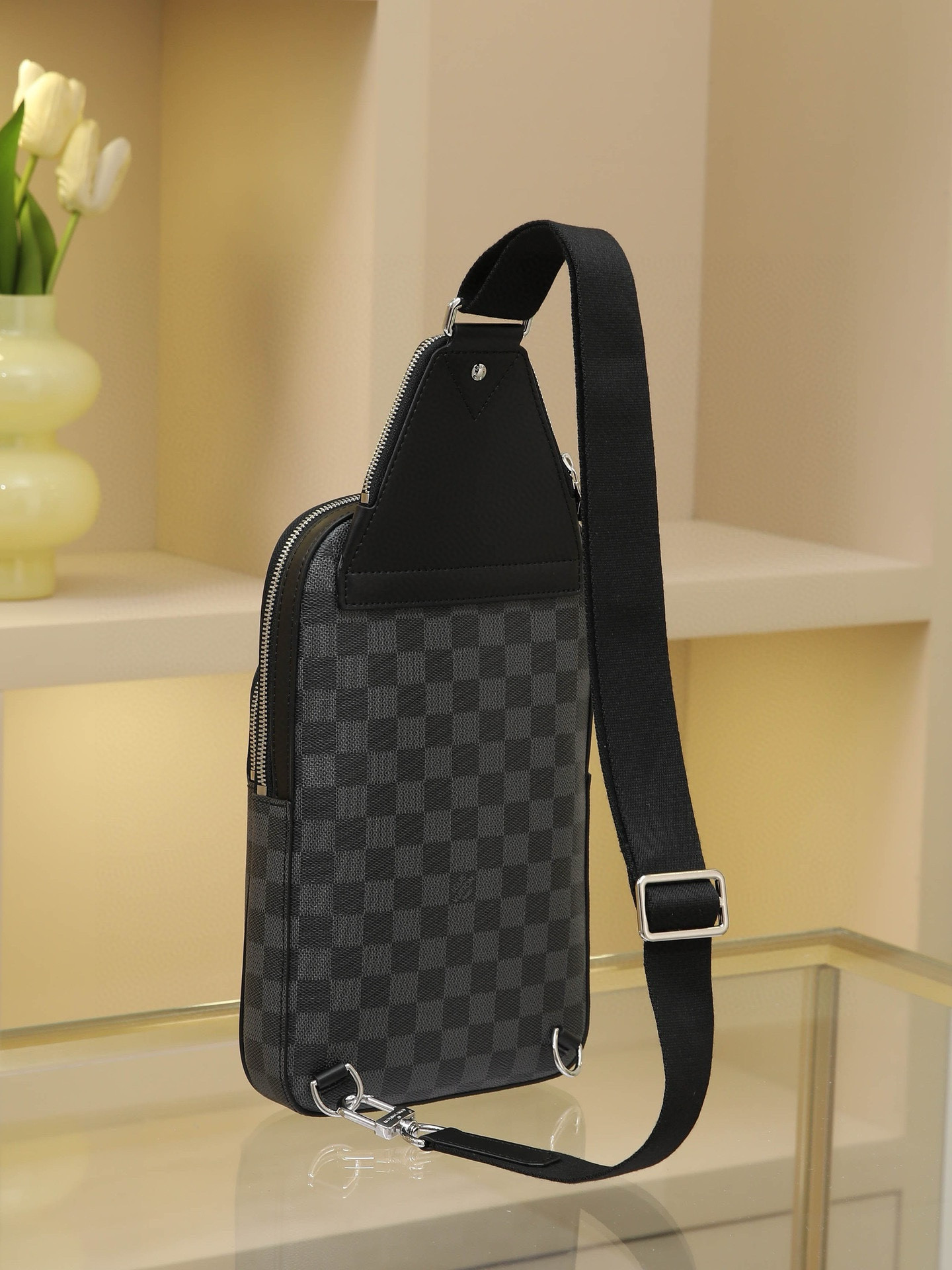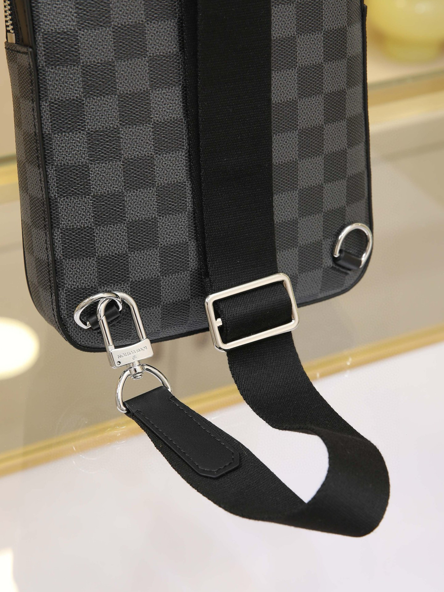All-Steel Hardware Crafted from Damier Graphite canvas, this Avenue shoulder bag features a Louis Vuitton Paris leather patch adorning the front exterior pocket. The adjustable nylon shoulder strap attaches to either side via D-rings, while the canvas shoulder strap and lining reflect sustainable design principles.Damier Graphite coated canvas Cowhide leather trim Fabric lining Square metal hardware on front Main compartment Zippered front pocket Small zippered top pocket Non-removable, adjustable shoulder strap! Dimensions: 20x31x7cm