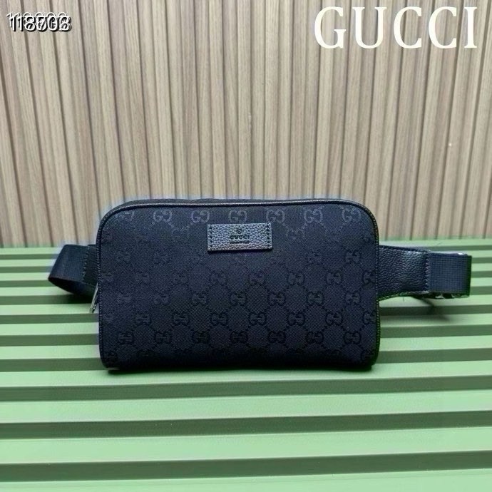 Gucci Canvas and Leather Double G Print Zipper Bag