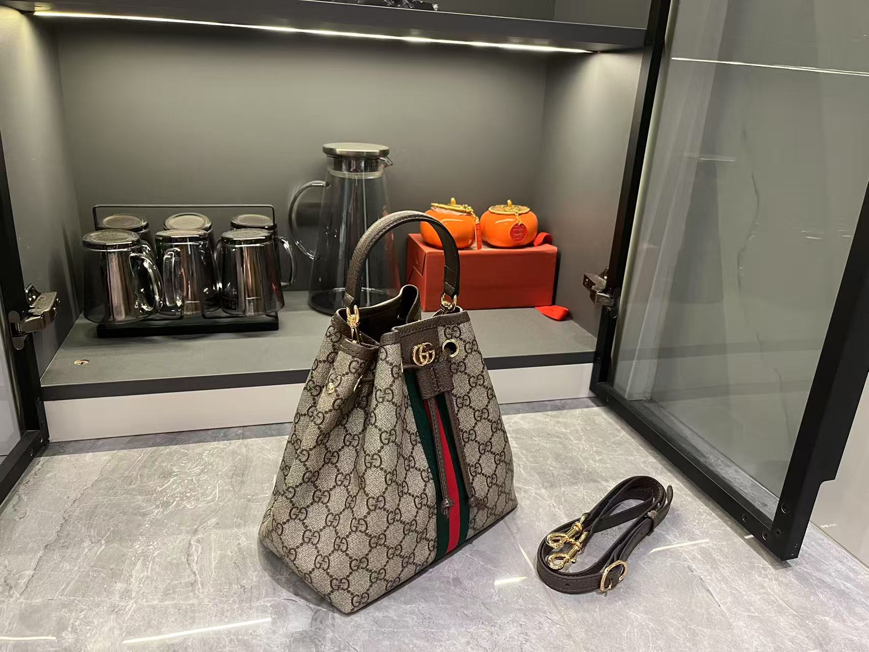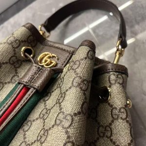 Batch 310…G G Ophidia collection masterfully reimagines innovative silhouettes and functionality, featuring signature beige and brown colorways to craft soft-textured, stylish handbag pieces. The flap showcases signature woven ribbon piping.