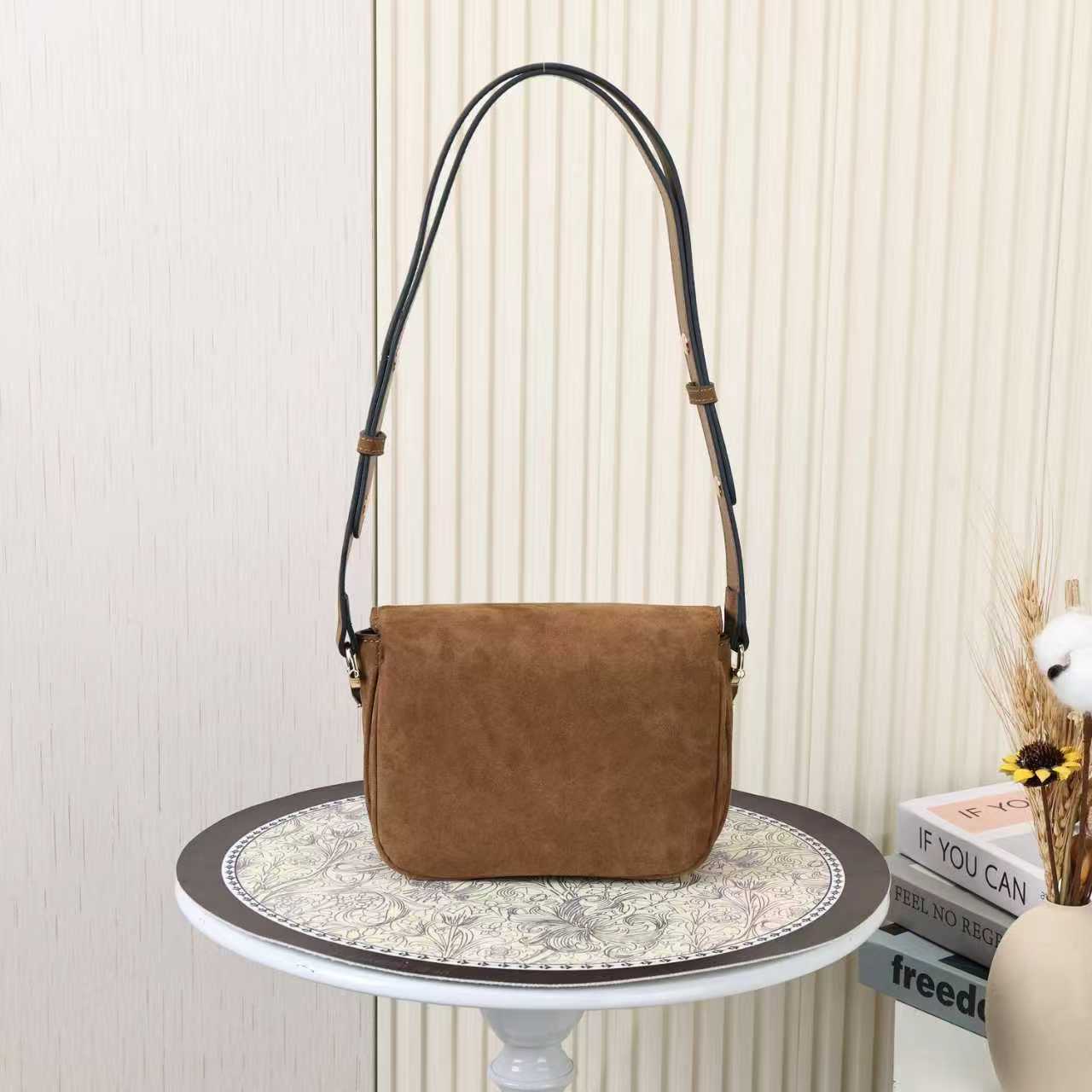 Batch 320….2025 Fall/Winter Collection. This shoulder bag reinterprets the brand’s equestrian-inspired design, blending light gold-tone details with suede material. Paired with double rings and elongated hardware, it enriches the Gucci Horsebit 1955 series.