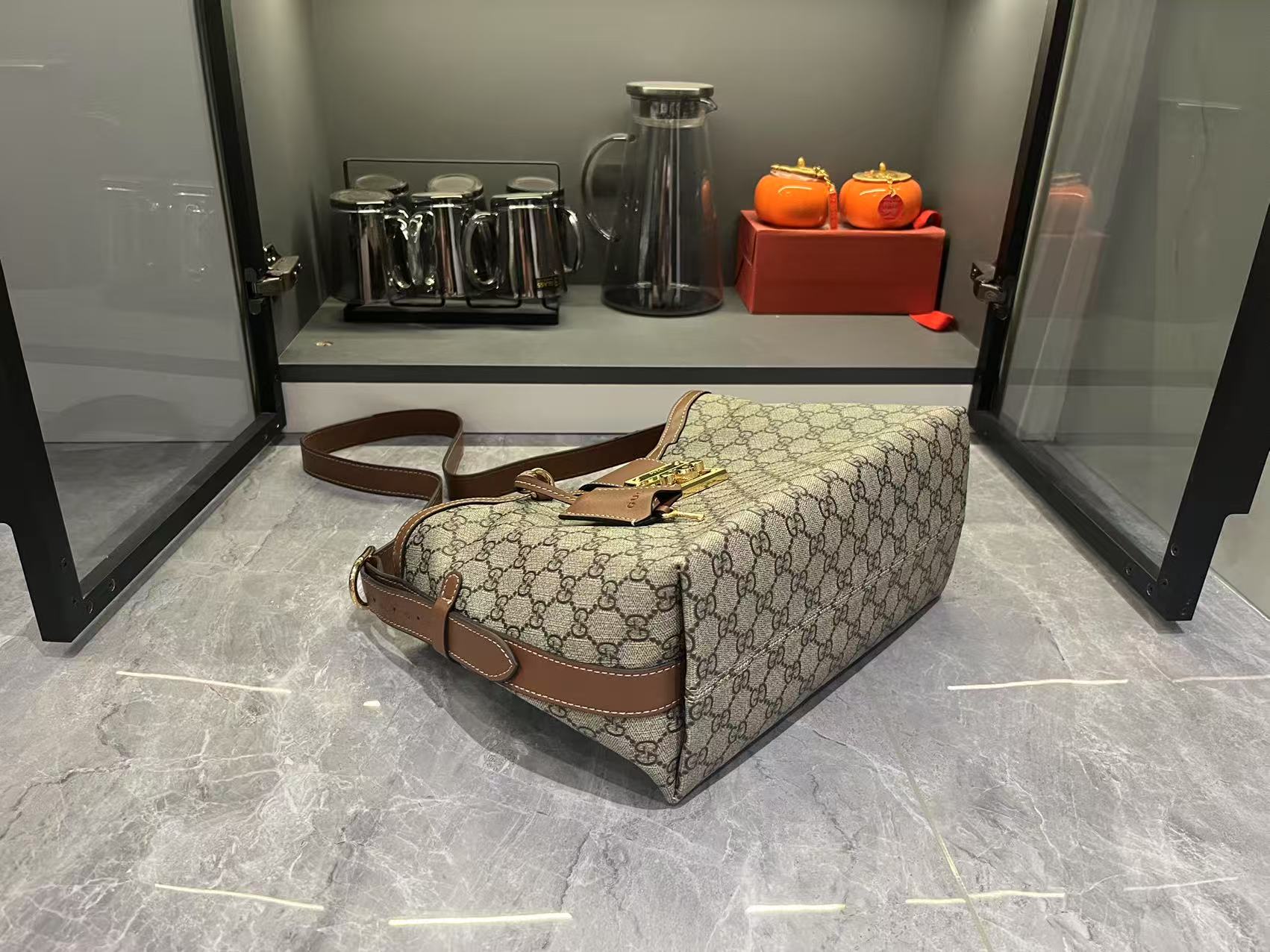 ![p840. [Complete with original boutique packaging] The Gucci Jackie 1961 collection tells a timeless brand story through its iconic push-lock closure and classic silhouette. Crafted from exquisite leather, this handbag reinterprets enduring elegance with contemporary flair.Dark brown leather with matte finish Light gold-tone hardware Dark brown leather lining Interior: One zippered pocket with Gucci emblem zipper pull Handles (18 cm height) Detachable leather shoulder strap (52 cm height) Push-lock closure Model: 820415.Dimensions: 27.5 cm (W) x 19 cm (H) x 4 cm (D) Weight: Approx. 400 g Color: Dark Brown/Satin Made in Italy](https://maivaro.com/wp-content/uploads/Bags/Gucci/_dfgc8pcshurzfupwdbievpyzvyrbhuxatwavc-g_1-300x300.jpg)