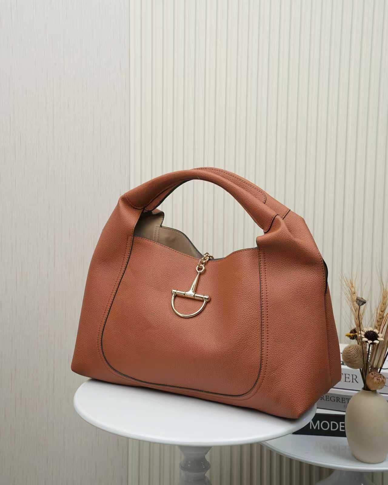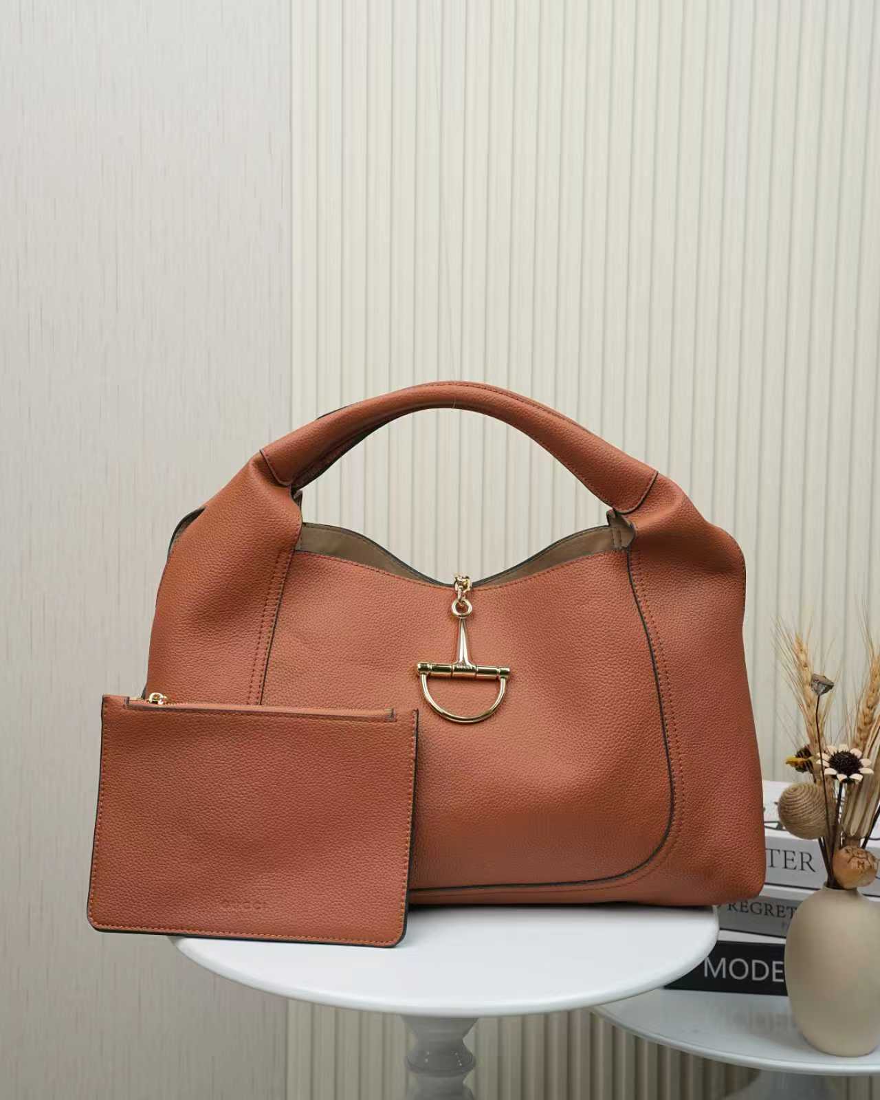 Batch 360… Gucc1 Softbit Series Large Lychee-Pattern Shoulder Bag with Detachable Clutch, Style No. 837466, Earth Brown Leather ๐๐๐ Dimensions: 46 cm (W) x 26 cm (H) x 16 cm (D)