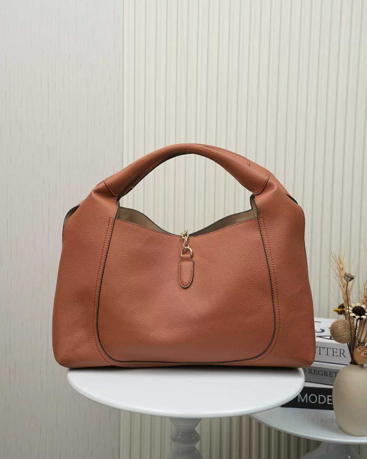 ![p840. [Complete with original boutique packaging] The Gucci Jackie 1961 collection tells a timeless brand story through its iconic push-lock closure and classic silhouette. Crafted from exquisite leather, this handbag reinterprets enduring elegance with contemporary flair.Dark brown leather with matte finish Light gold-tone hardware Dark brown leather lining Interior: One zippered pocket with Gucci emblem zipper pull Handles (18 cm height) Detachable leather shoulder strap (52 cm height) Push-lock closure Model: 820415.Dimensions: 27.5 cm (W) x 19 cm (H) x 4 cm (D) Weight: Approx. 400 g Color: Dark Brown/Satin Made in Italy](https://maivaro.com/wp-content/uploads/Bags/Gucci/_dfgc8pcshurzfupwdbievpyzvyrbhuxatwavc-g_1-300x300.jpg)
