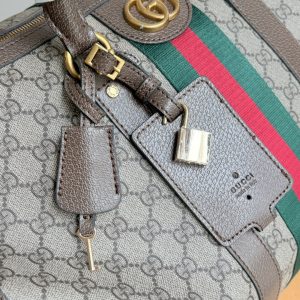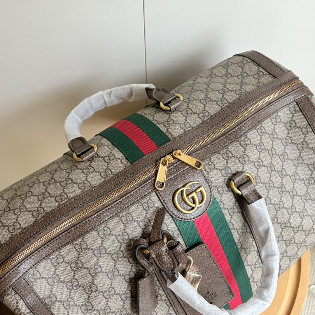 Batch 380... Style No.: 648085 Brown leather Dimensions: 45/27/23 cm Ophidia classic travel tote bag Features padded shoulder strap and key lock🔐 Incredibly spacious interior The ultimate choice for travel
