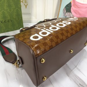 Batch 390…🔥🔥 adidas x Gucci Collaboration Mini Travel Bag. As part of the adidas x Gucci collaboration collection, this mini travel bag features “Gucci adidas” and Trefoil prints. adidas and Gucci boldly explore this collaborative series, where woven straps and GG lettering patterns artfully complement the white three stripes and Trefoil logo.Drawing inspiration from the creative director’s nostalgic memories of the 80s and 90s, the collection merges both brands’ rich heritage and iconic design language to shape distinctive styles. “Gucci adidas” and Trefoil print white leather trim adidas x Gucci collaboration series, red and green woven straps, interlocking double G and Trefoil print cotton-linen lining. Model: 702397.Dimensions: 31.5*18*15.5cm. Color: White leather/adidas collaboration edition.