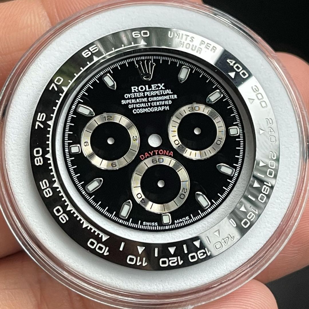 Better Factory Daytona Specifications: Model: 116500 Dimensions: 40mm × 12.2mm Functions: Hours, Minutes, Seconds, Chronograph Display Movement: 4130 Power Reserve: 72 hours Crystal: Sapphire Dial: White/Black Material: 904L Stainless Steel Bracelet: AR Factory Steel Bracelet Bezel: Ceramic Bezel with Platinum Coating Luminescence: Swiss Luminous Paint Water Resistance: 100 meters Weight: 160gSapphire Crystal: White dial, black dial Material: 904L Stainless Steel Bracelet: AR Factory Steel Bracelet Bezel: Ceramic Bezel with Platinum-Plated Film Luminescence: Swiss Luminous Paint Water Resistance: 100 meters Weight: 148 grams BT Factory (Better Factory) Rolex Daytona Nine Key Highlights: 1. BT Factory’s Daytona 4130 movement watch measures 12.2mm thick. Other market versions use 7750 fake bridge movements, which reduce thickness by flattening the pin bar. This results in extremely poor stability and cannot match the genuine article. 2. Features the 4130 movement (originally from N Dandong Factory). The back bridge employs engraving and electroplated lettering for enhanced brightness. 3. Steel bracelet sourced from the original AR factory. Additionally, the clasp has been further upgraded in proportion and dimensions. 4. The case is machined by N Factory to match the latest 2022 version, with updated polishing dimensions for the case back and improved curvature of the bezel edges. 5. Hands upgraded again by Buff Factory: all three small seconds hands and the large seconds hand are individually custom-made with solid ferrules, featuring mushroom-shaped rounded tips. 6. The Cerachrom ceramic bezel has been upgraded with platinum-plated lettering to prevent discoloration, while the font thickness has been updated. 7. Dial replicates the 2022 white version using Swiss ink blended with Korean ceramic polishing for a rich, pure milky white finish matching the genuine model. Eliminates the “dead white” discoloration common in previous market versions. 8. Each hour marker is individually CNC-engraved and hand-polished at the edges. Swiss luminous powder ensures color consistency with the authentic version, delivering the closest luminous effect to the genuine watch on the market. 9. The crystal employs fully transparent sapphire glass with no visible edges. Currently, most market crystals exhibit a thick, rounded edge appearance. Only BT Factory’s craftsmanship matches the genuine article’s details. Better Factory is a watchmaker with 30 years of manufacturing experience. Leveraging extensive resources, it possesses substantial technical expertise and industry connections. Watch enthusiasts are welcome to compare our products with originals and share valuable feedback. Thank you for your support!