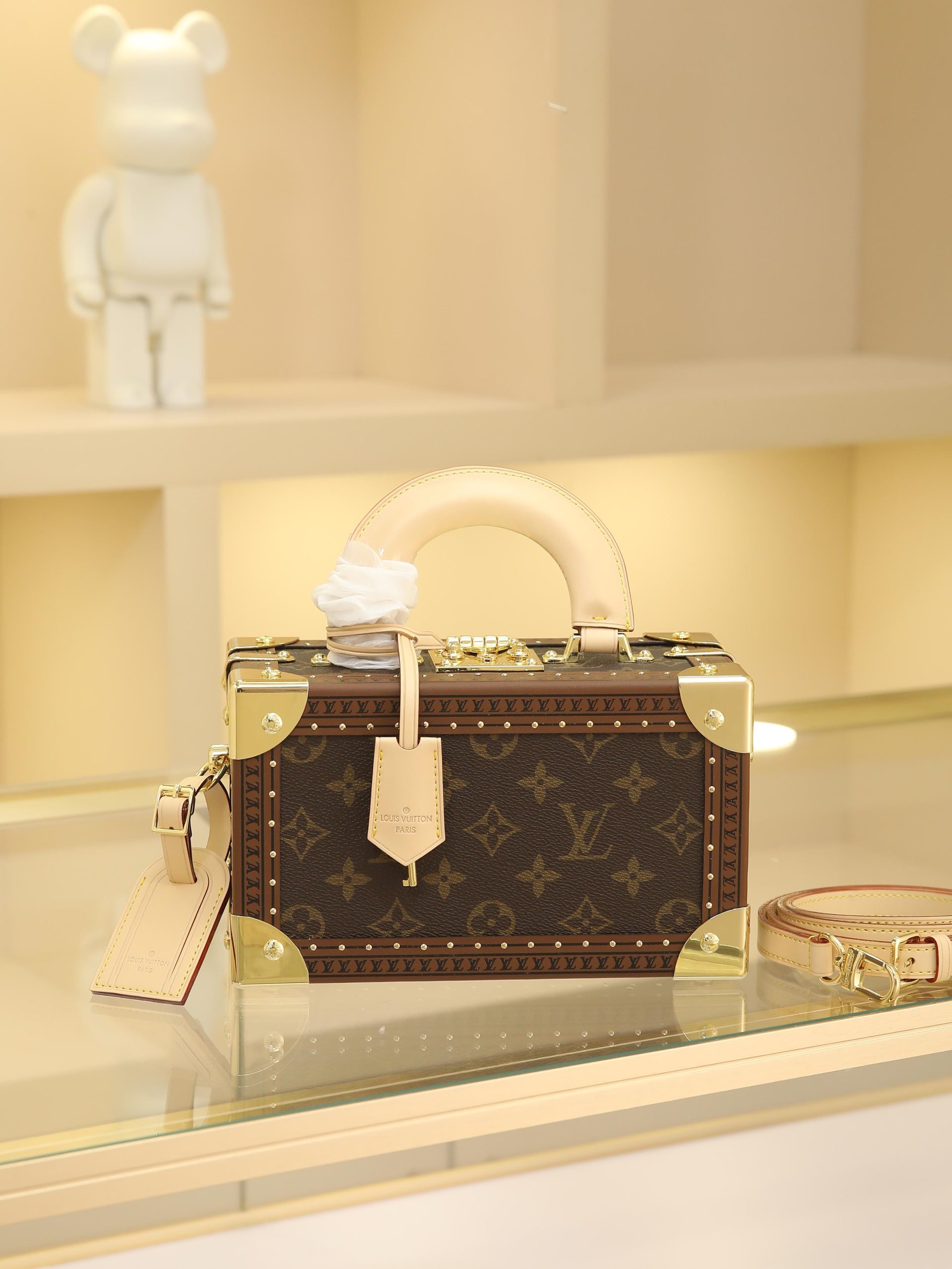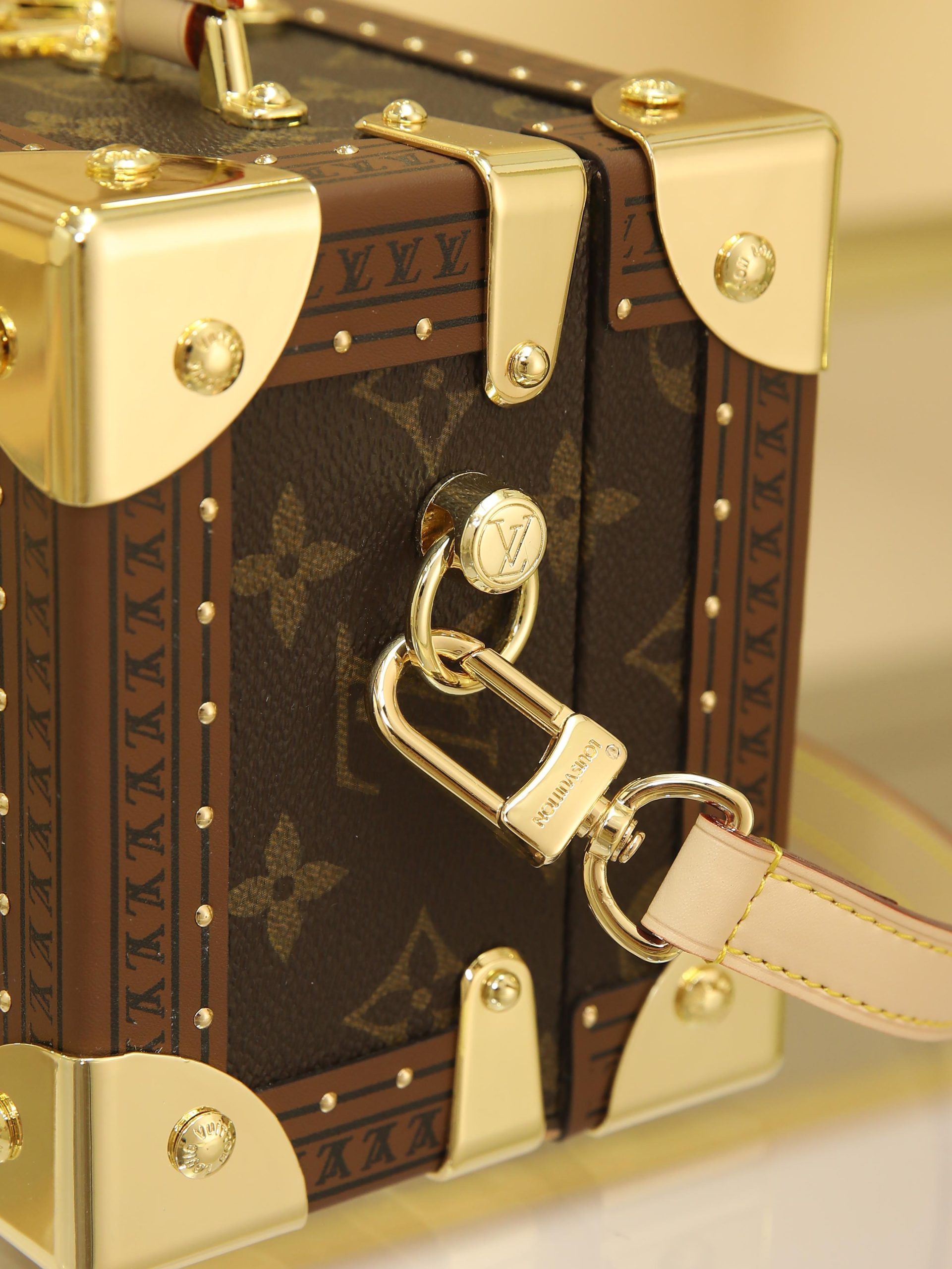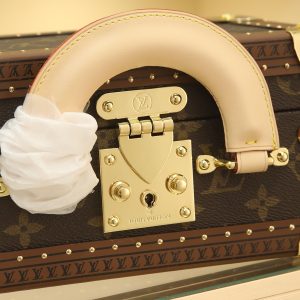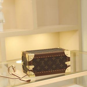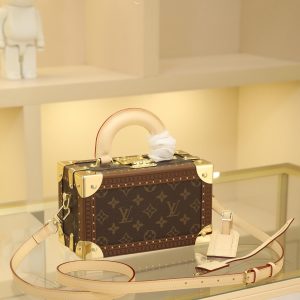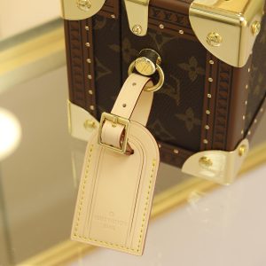 Box Bag valisette trésor Handbag Case For the Spring/Summer 2021 collection, Women’s Artistic Director Nicolas Ghesquière collaborated with Women’s Leather Goods Design Director Johnny Coca to introduce the new wearable valisette trésor handbag case. Its shape and dimensions draw inspiration from the brand’s iconic coffret trésor 20 case.Originally a compact storage case for jewelry or other precious treasures, it has been reimagined as a soft, wearable handbag. Fully functional, it combines traditional leather craftsmanship with authentic trunk-inspired details—including Lozines vulcanized fiber trim with studs and an S-shaped padlock with key.Estimated delivery time for this product exceeds nine months. Dimensions: 22.5 x 14.5 x 11.5 cm.