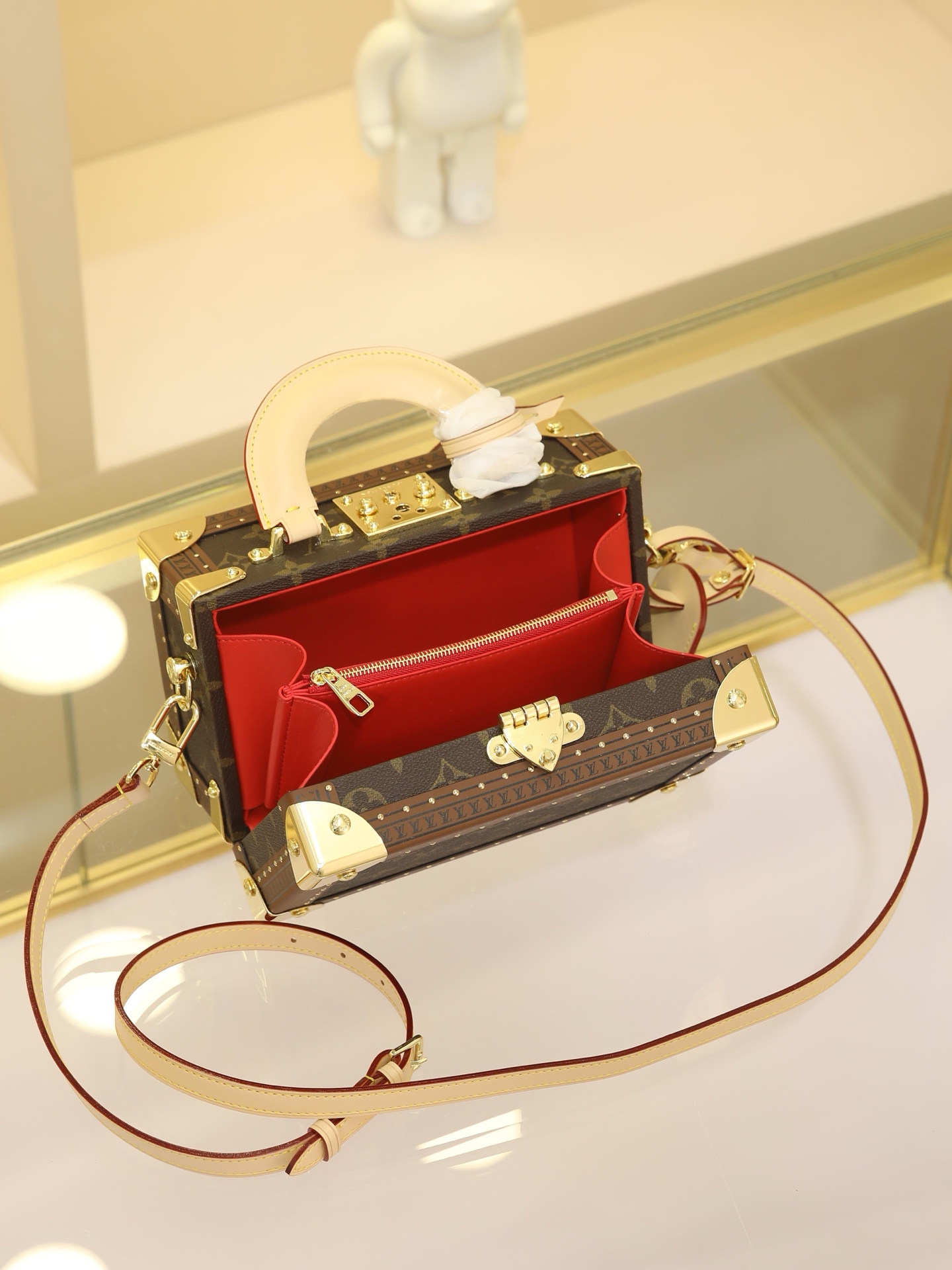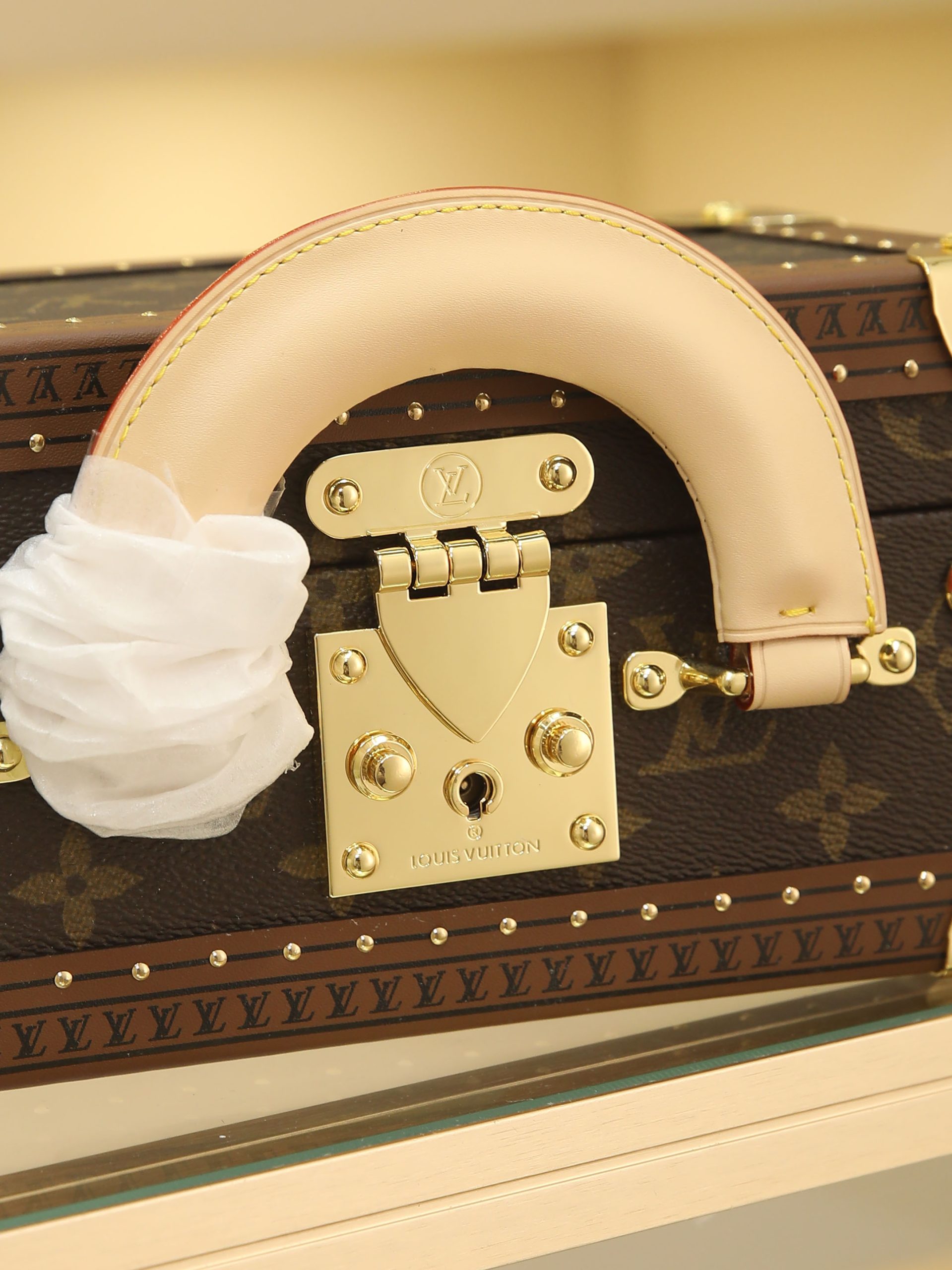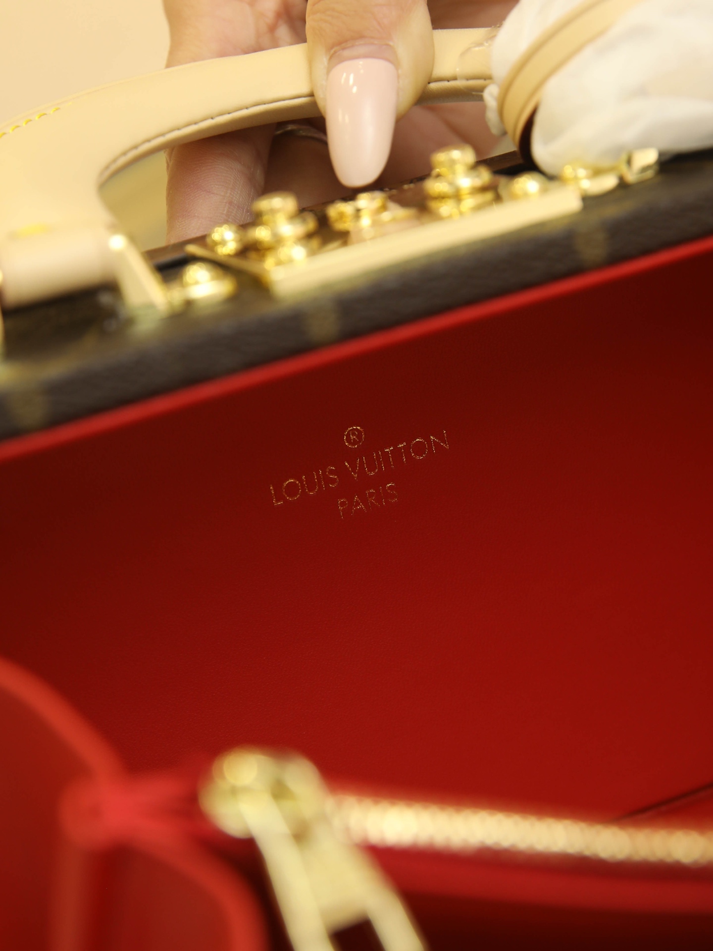 Box Bag valisette trésor Handbag Case For the Spring/Summer 2021 collection, Women’s Artistic Director Nicolas Ghesquière collaborated with Women’s Leather Goods Design Director Johnny Coca to introduce the new wearable valisette trésor handbag case. Its shape and dimensions draw inspiration from the brand’s iconic coffret trésor 20 case.Originally a compact storage case for jewelry or other precious treasures, it has been reimagined as a soft, wearable handbag. Fully functional, it combines traditional leather craftsmanship with authentic trunk-inspired details—including Lozines vulcanized fiber trim with studs and an S-shaped padlock with key.Estimated delivery time for this product exceeds nine months. Dimensions: 22.5 x 14.5 x 11.5 cm.