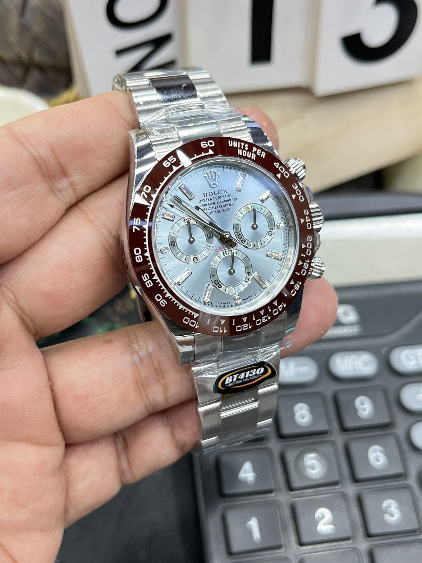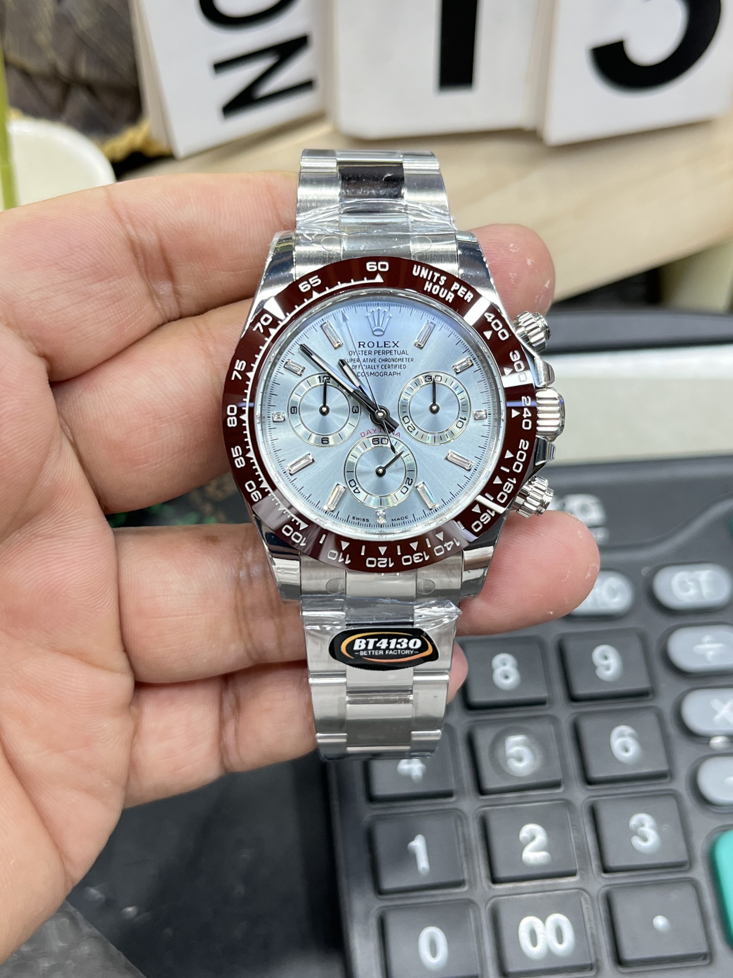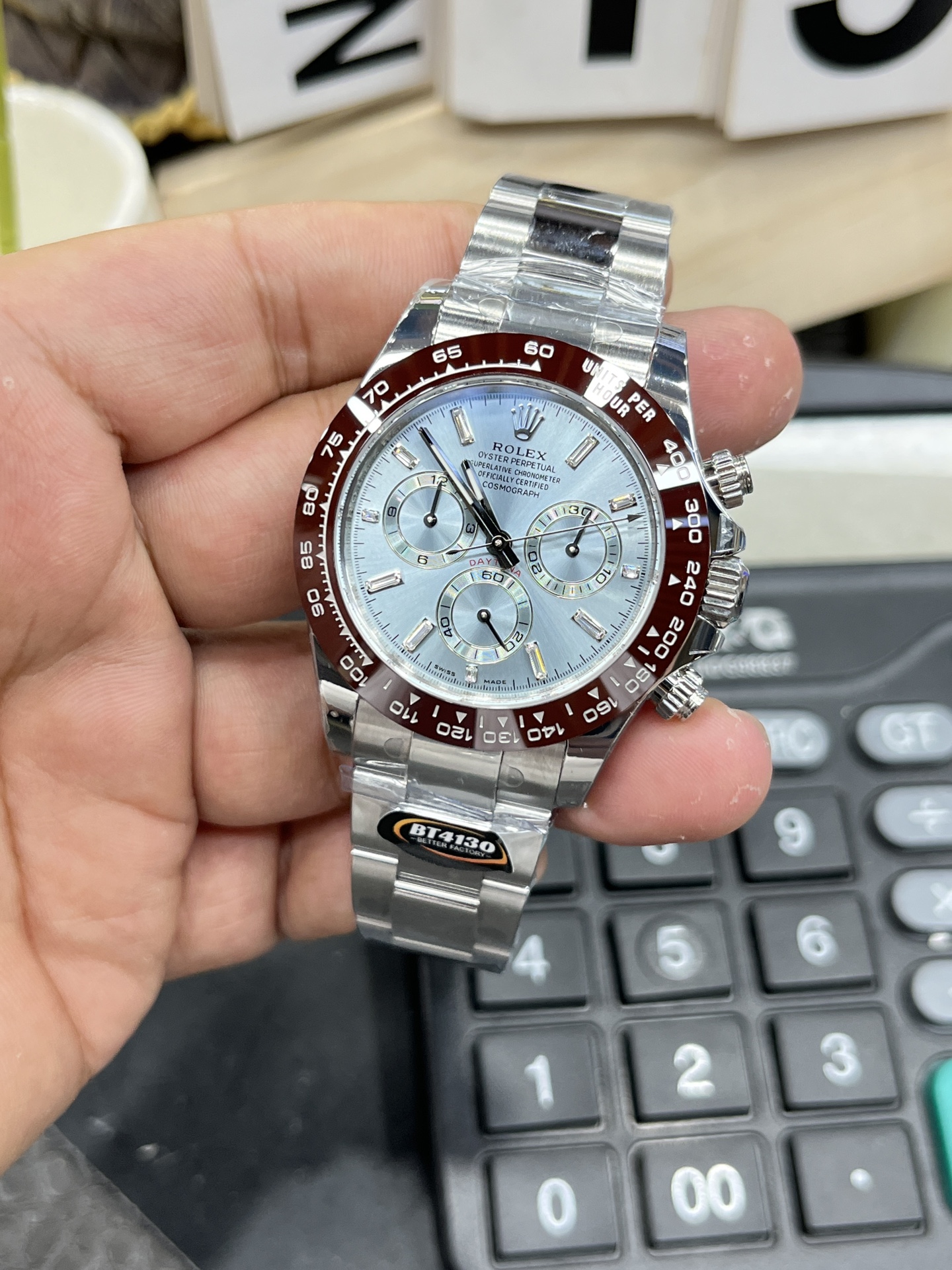 BT Rolex Daytona Series / 40mm Ice Blue Dial with Diamond Bezel / Powered by Dandong 4130 Automatic Chronograph Movement