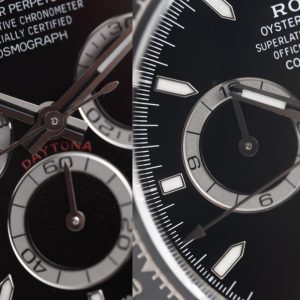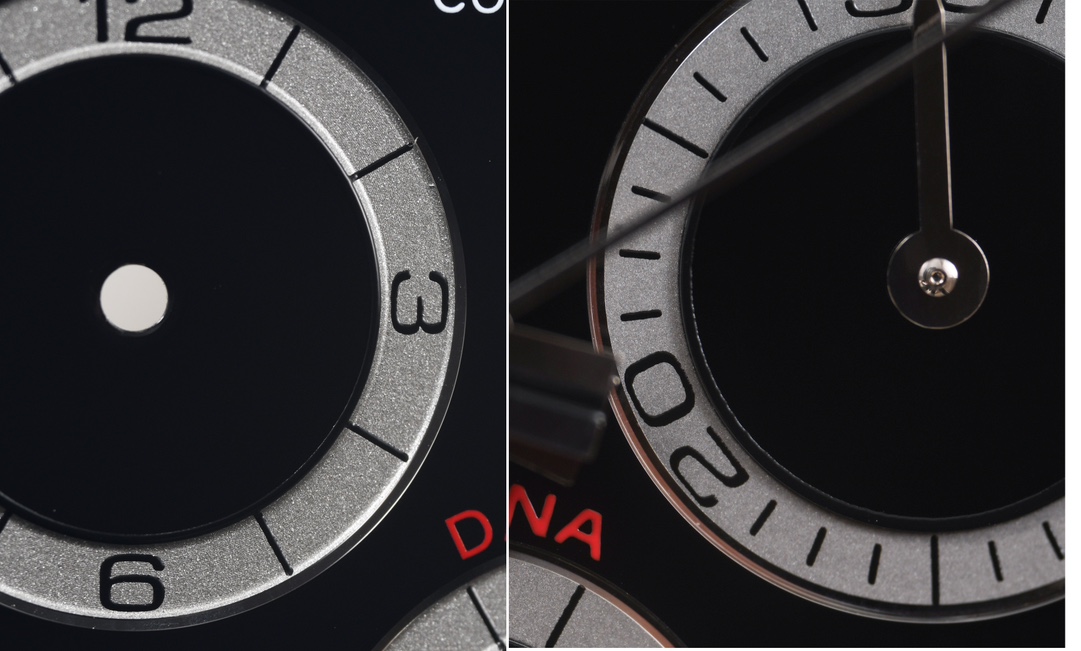 Other elements like the hour markers and luminescence are also well-executed. /PS: As mentioned earlier, the genuine 4131 later models feature cylindrical tube heads on the hands. However, examining the four genuine watches provided by Clean, we identified several discrepancies: variations in the roundness of the hour markers, and the use of older conical tube heads on the hands. This suggests Rolex may be clearing out its 4130 inventory.