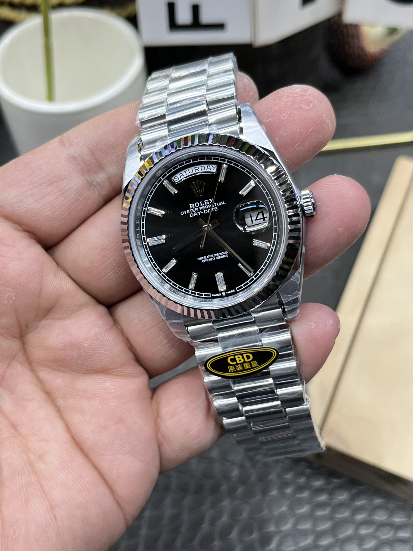 CBD Rolex Day-Date / 40mm Black Dial / Seagull 3255 Automatic Mechanical Movement / Super Weighted 217g