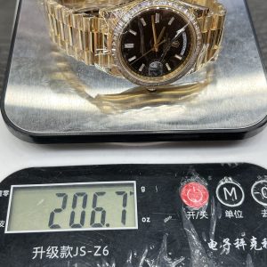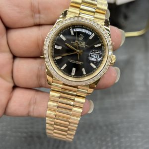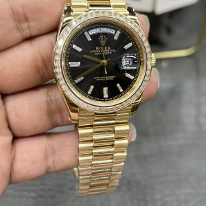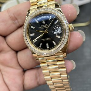 CBD Rolex Day-Date / 40mm Black Ice Sugar Custom Edition with Large Moissanite Bezel ➕ 18K Gold-Plated Case / Seagull 3255 Automatic Mechanical Movement / Super Weighted 207g