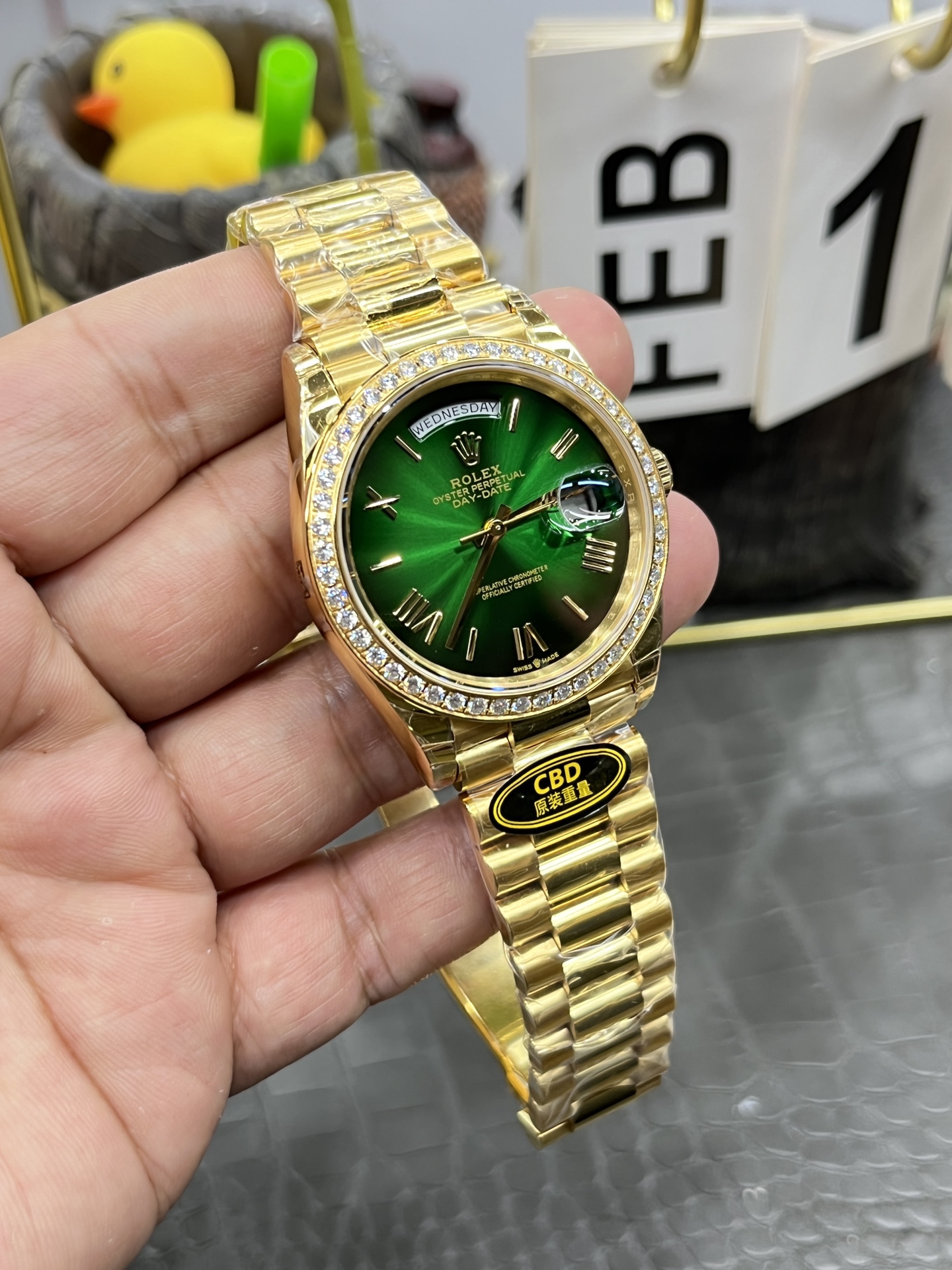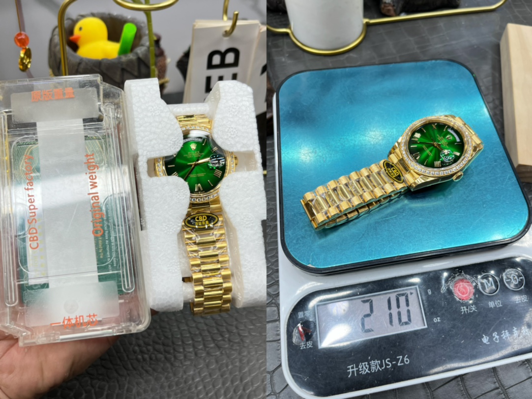 CBD Rolex Day-Date / 40mm Casino Green Moissanite Bezel / Seagull 3255 Automatic Mechanical Movement / Super Weighted 210g