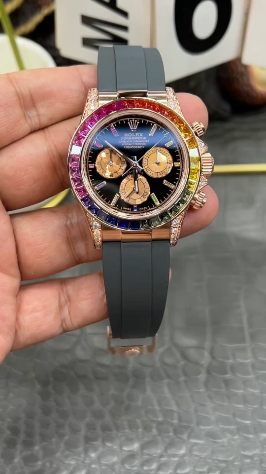 CBD Rolex Private Customization Daytona Series / 40mm Rainbow Daytona / Dandong 4130 Automatic Chronograph Mechanical Movement / Super Weighted 153g