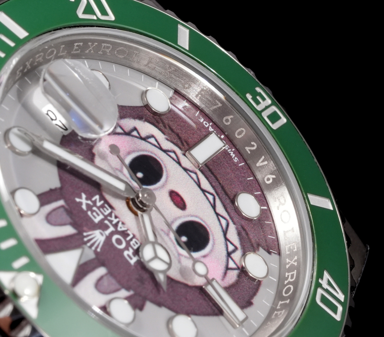 CLEAN➕出品,Rolex&Labubu劳力士Black联名款“拉布布”限量发行字面采用多色油彩表面加上搪瓷使字面更加光亮劳力士 ROLEX -粉色水鬼,40mm搭载一比一超级3135上海一体机芯,整表904L精钢 /搭配ar厂钢带,唯一做到指针夜光/字钉夜光 做到同色 秒针针轴锅盖实心中轴,因为都是第三方工厂加工+自购瑞士 c1+c3夜光粉 ,字钉ip白金电镀 6:陶瓷绿圈采用clean绿圈v4版本 颜色无限接近原装 clean陶瓷类配件 无需赘述 高品质象征 /谨防假clean圈 注意区分温润如玉夜光珠 不死白 采用clean陶瓷圈+夜光珠完美复刻 彻底解决世面上的大部分水鬼痛点,只为极致而生 精致推荐男士机械腕表