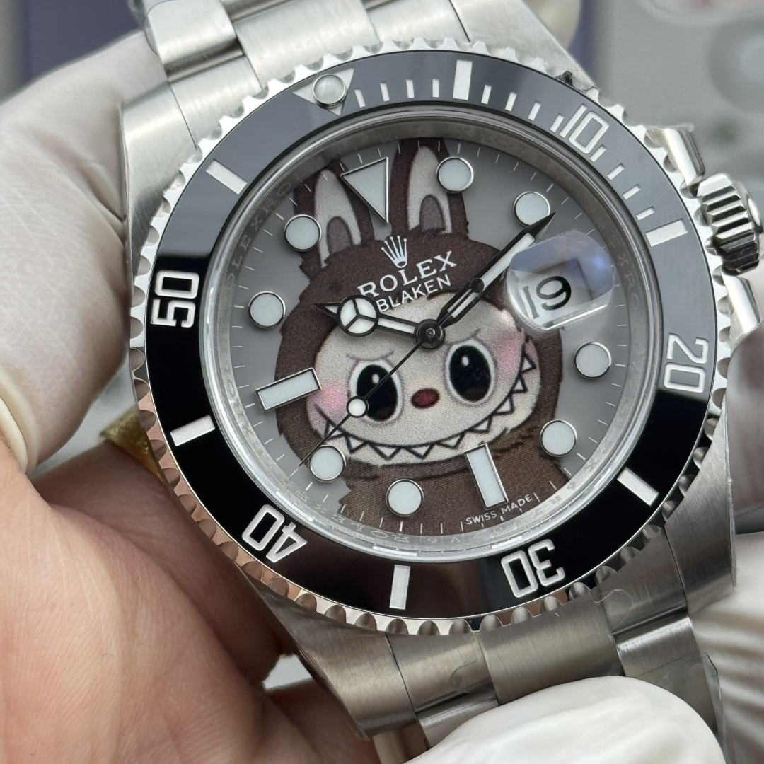 CLEAN➕出品,Rolex&Labubu劳力士Black联名款“拉布布”限量发行字面采用多色油彩表面加上搪瓷使字面更加光亮劳力士 ROLEX -粉色水鬼,40mm搭载一比一超级3135上海一体机芯,整表904L精钢 /搭配ar厂钢带,唯一做到指针夜光/字钉夜光 做到同色 秒针针轴锅盖实心中轴,因为都是第三方工厂加工+自购瑞士 c1+c3夜光粉 ,字钉ip白金电镀 6:陶瓷绿圈采用clean绿圈v4版本 颜色无限接近原装 clean陶瓷类配件 无需赘述 高品质象征 /谨防假clean圈 注意区分温润如玉夜光珠 不死白 采用clean陶瓷圈+夜光珠完美复刻 彻底解决世面上的大部分水鬼痛点,只为极致而生 精致推荐男士机械腕表
