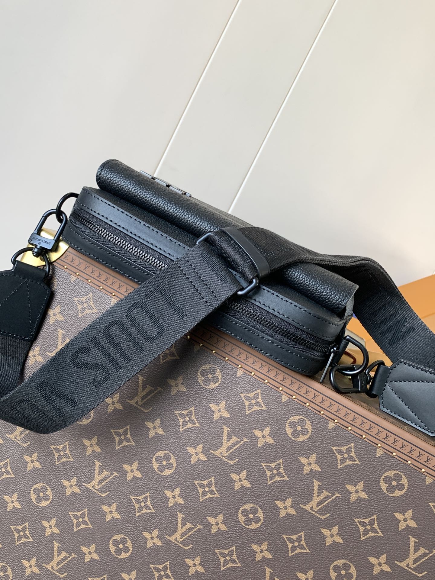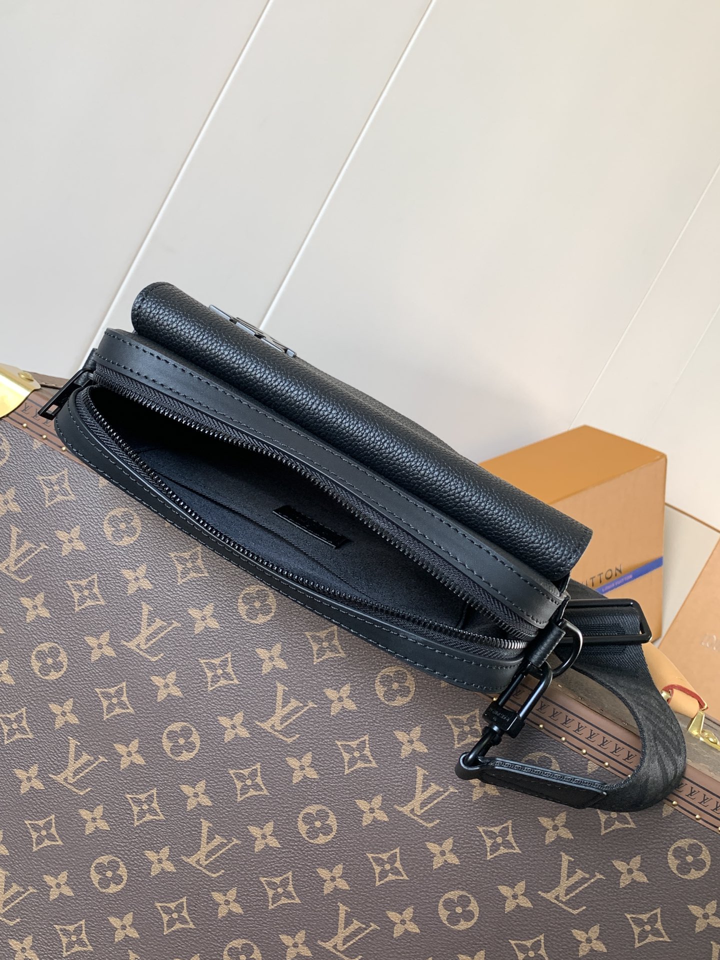 • Cowhide leather • Cowhide leather trim • Fabric lining • Metal hardware • Metal LV monogram • Zipper closure • Front flap with magnetic snap • Strap: Detachable, adjustable • Strap drop: 164 cm • Strap drop max: 63.0 cm