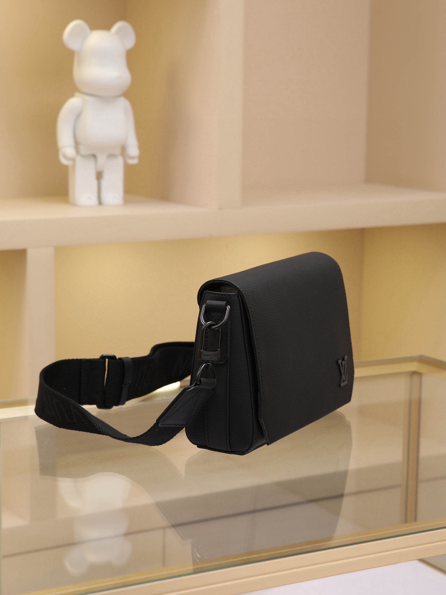 Crafted from cowhide leather, this piece features a blunt-cornered flap and LV monogram, continuing the signature elements of the LV Aerogram Jm collection. Its slim silhouette combines with a detachable wide shoulder strap, making it an ideal choice for everyday use. Dimensions: 22 x 16.5 x 7 cm