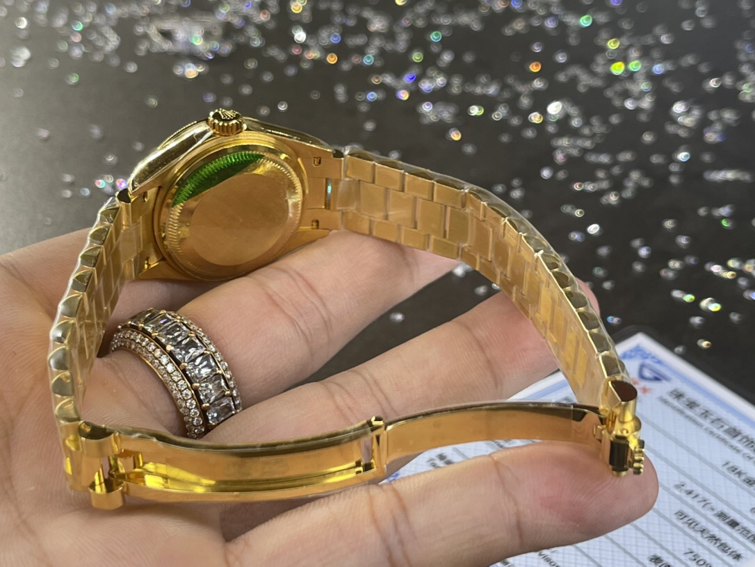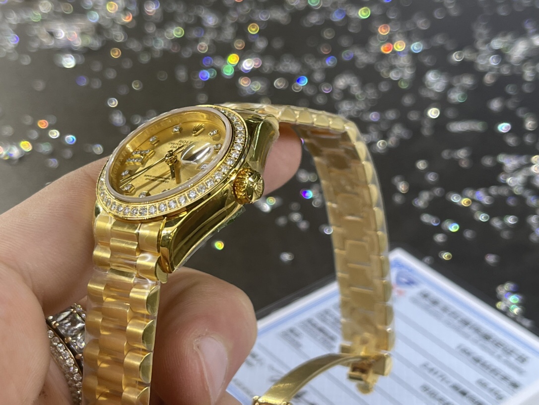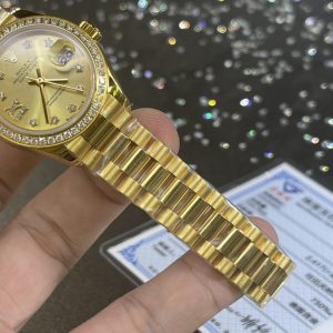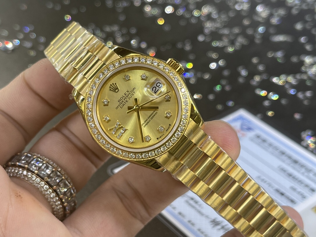 Custom Rolex Datejust 28mm Women’s Watch Bezel with Engraved Markers Set with South African Diamonds💎 Entire watch encased in 18K gold Thick gold plating, dazzling golden luster Detail sharing (Specializing in market-grade South African genuine diamond setting, 18K gold, 24K gold plating. Gold plating achieves K-gold effect at minimal cost. Genuine gold coating ensures surface never fades.) Actual photos upon shipment