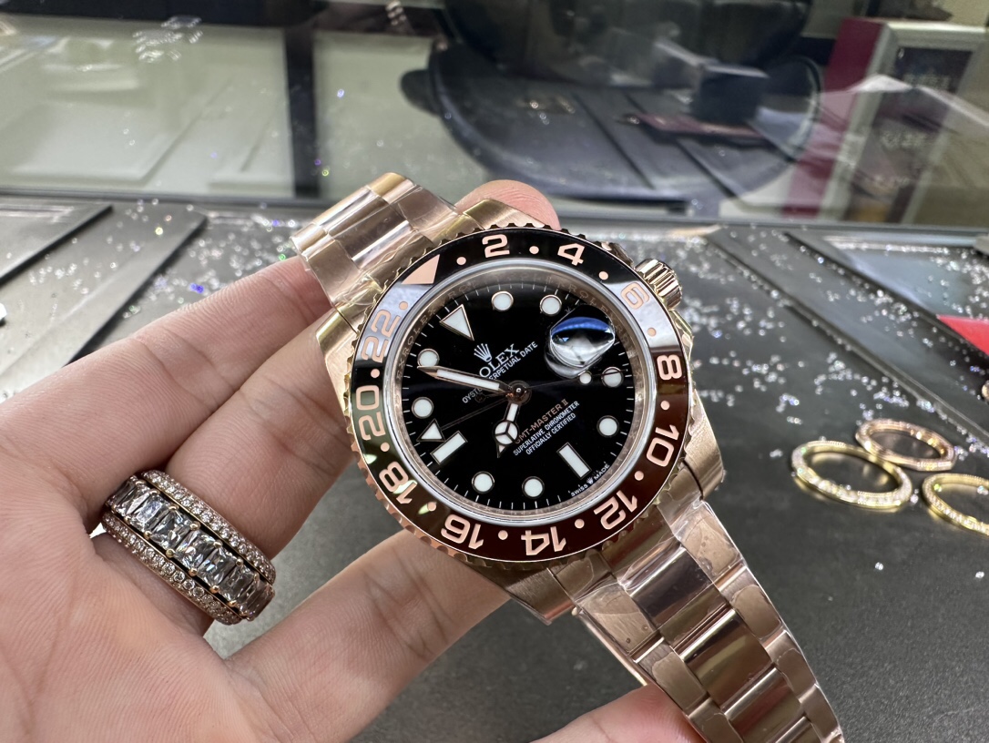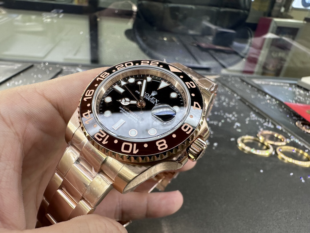 Customer-Ordered Rolex GMT-Master II Full 18K Rose Gold Case Thick Gold Plating, Radiant Gold Finish Detailed Sharing (Market-Available South African Genuine Diamond Setting in 18K Gold 24K Gold Plating Effect: Achieves K-Gold Appearance at Minimal Cost Genuine Gold Surface Coating Never Fades) Actual Shipping Photos