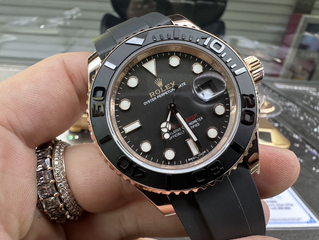 Customer-Ordered Rolex Yacht-Master: Full-Case 18K Rose Gold Edition Thick Gold Plating, Radiant Gold Finish Detailed Sharing (Market-Available: Genuine South African Diamond Setting in 18K Gold / 24K Gold Plating. Gold-plating achieves K-gold effect at minimal cost. Genuine gold coating ensures permanent color retention.) Actual Shipping Photos