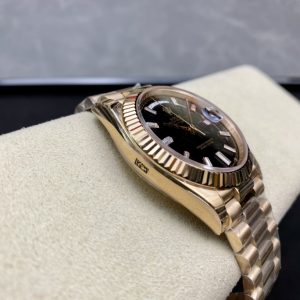 EW Factory’s Latest Masterpiece: V2 Upgrade Edition Rolex Day-Date 40mm Ultimate Version Features the original 3255 automatic mechanical movement (228239 series), 40mm diameter, developed over 16 months! 1:1 replica of the original mold. Key upgrades include: 1. Case diameter matches the 2019 latest 3255 series at 40mm.2. Bracelet end links precisely match the genuine version, featuring a highly complex 5-piece assembly. Seamless interlocking design between bracelet and case.3. The crown base has been modified to feature two dots, matching the authentic design. 4. The clasp incorporates an internal spring, with font size and craftsmanship identical to the original. 5. The case side includes an anti-counterfeit QR code, matching the authentic version, and the caseback features a verification QR code. 6. The case link connecting the case and bracelet is engraved with the authentic model number 228239.7. The inner bezel engraves a serial number matching the warranty card, adhering to the authentic “one watch, one card, one code” principle (absolutely non-repeating). 8. Includes the complete original accessory set (warranty card, instruction manual, model barcode matching the genuine article). Full packaging identical to the authentic version (the genuine one-to-one Sunday Calendar model available on the market). EW’s sincere creation—welcome to all watch enthusiasts for appraisal!