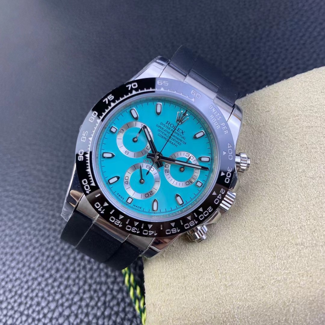 Exclusive Quality 904 Version Top-Tier Replica: ROLEX Daytona Chronograph 904L Stainless Steel Screw-Down Crown and Pushers Features 4130 Automatic Mechanical Chronograph Movement Highly Efficient, Precise, and Stable Case Diameter: 40mm Thickness: 13.4mm For Tiffany Blue, Please Verify Exclusive Quality