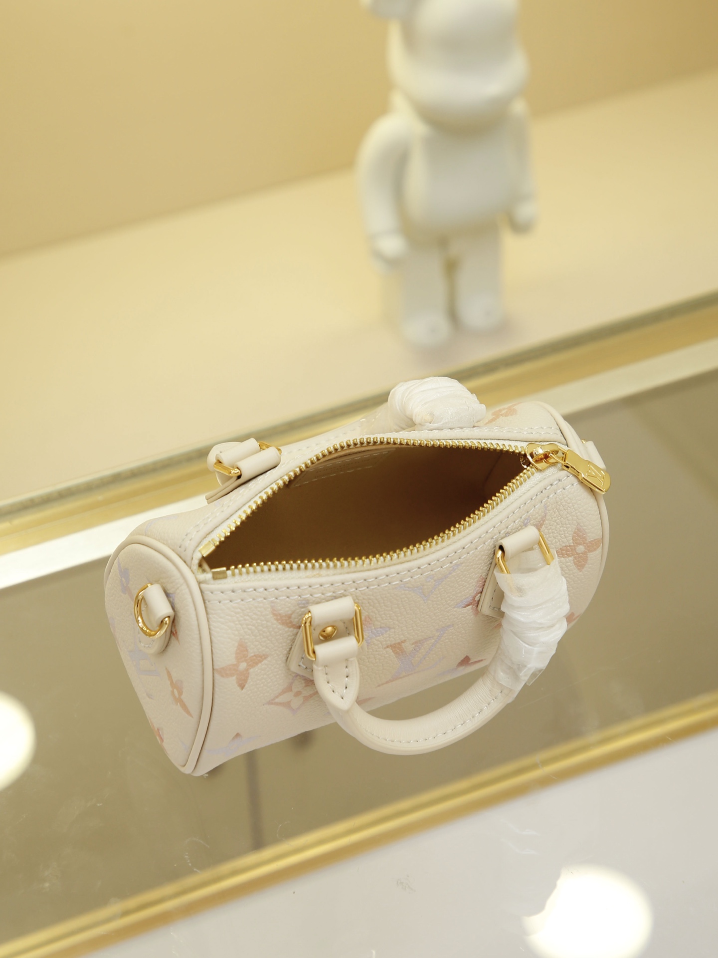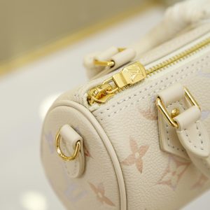Full-Leather Speedy Pillow Bag This Nano Speedy handbag is drenched in delicate, dreamlike hues for the new season, effortlessly elevating any look. Crafted from classic Monogram Empreinte leather with metal hardware, its spacious interior accommodates essentials like a compact wallet. The detachable shoulder strap offers versatile carrying options. 10 x 7.5 x 16 cm (H x W x L)