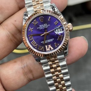 GS Rolex Datejust Series / 31mm Rose Gold Case with Purple Roman Dial / Powered by Hangzhou Cal.2236 Automatic Mechanical Movement