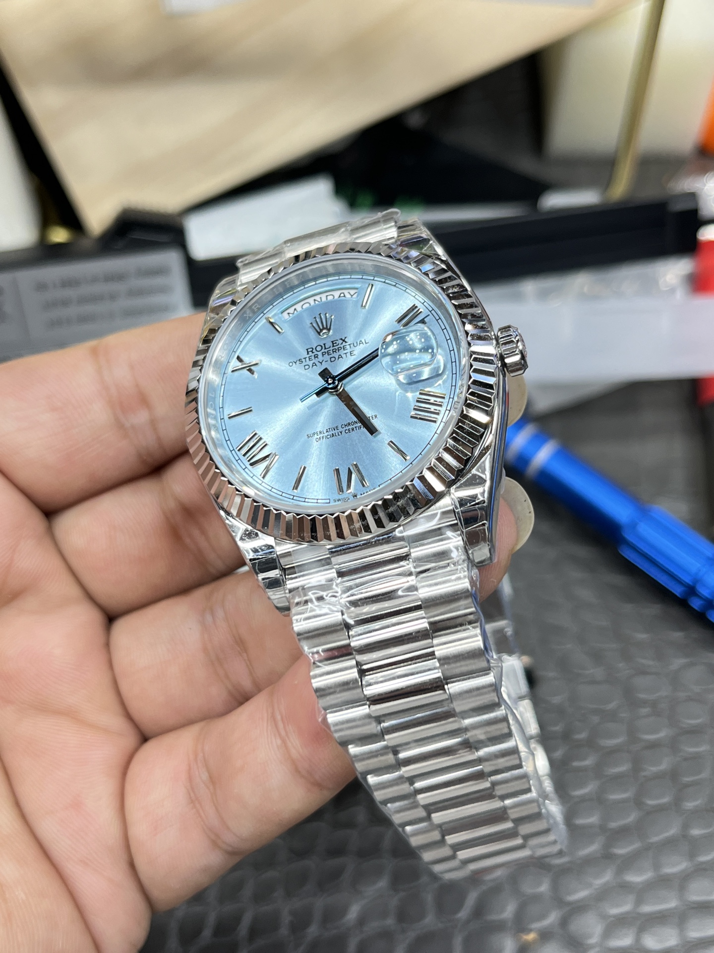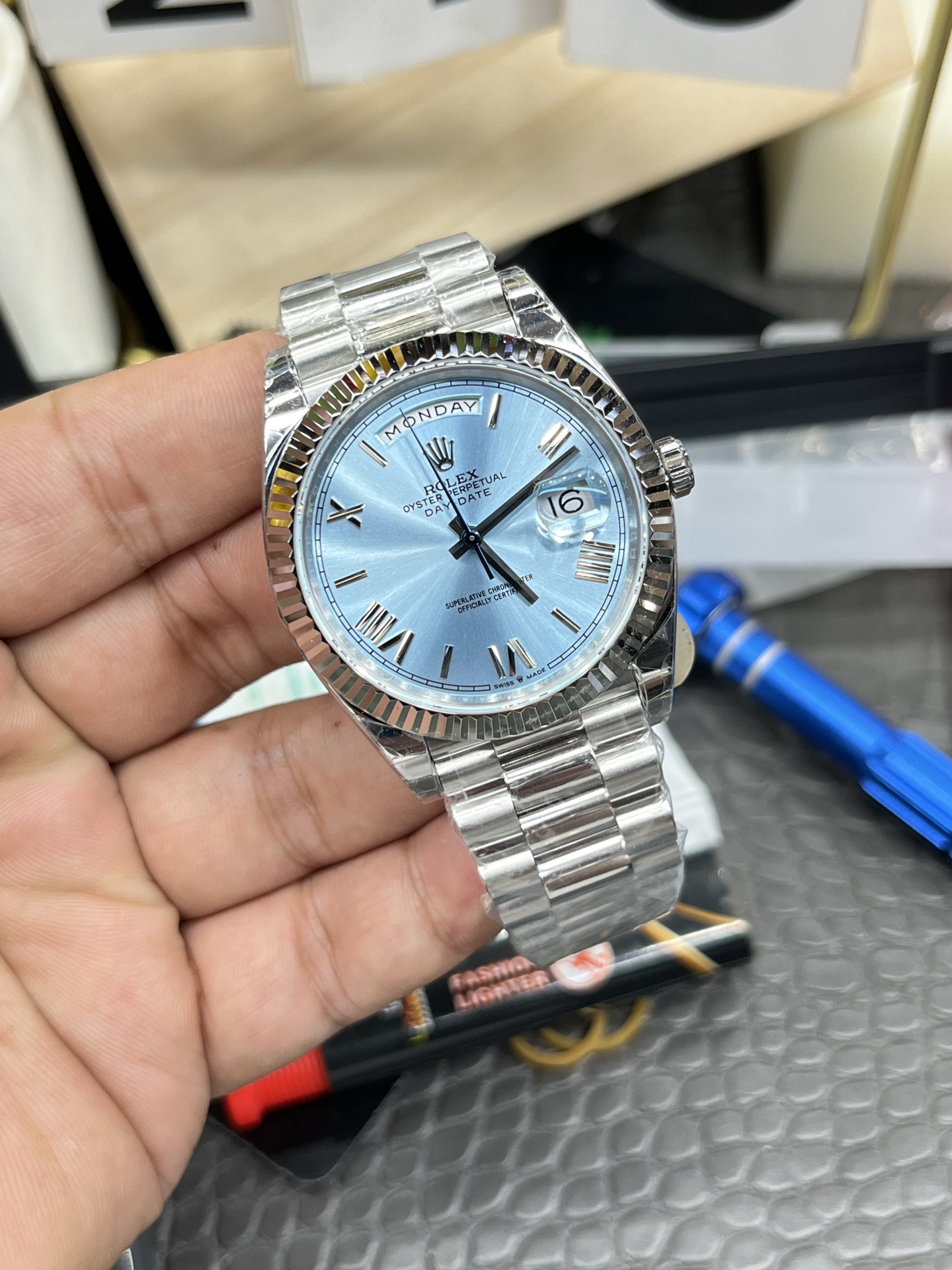 GS Rolex Day-Date with Balance Weight / 41mm Ice Blue Dial / Shanghai 3255 Automatic Mechanical Movement / 171g Weight
