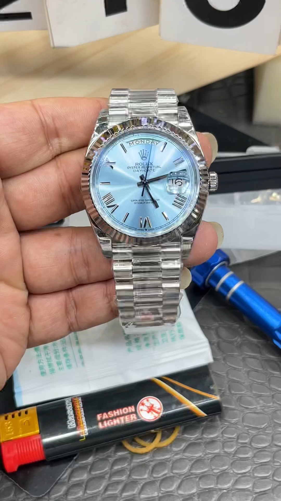 GS Rolex Day-Date with Balance Weight / 41mm Ice Blue Dial / Shanghai 3255 Automatic Mechanical Movement / 171g Weight