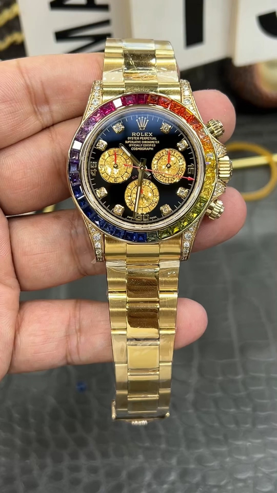 GW Private Custom Edition Rolex Rainbow Datejust / 40mm Full Gold Steel Bracelet Weighted Version 207g / Powered by Shanghai 4130 Automatic Chronograph Mechanical Movement